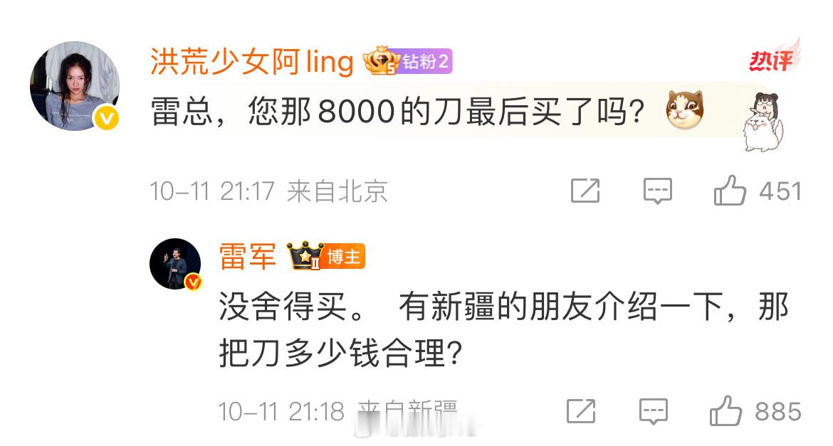 雷总去新疆看测试车,问了一个八千的刀,把雷总都惊讶到了,最终也是没有买[允悲]