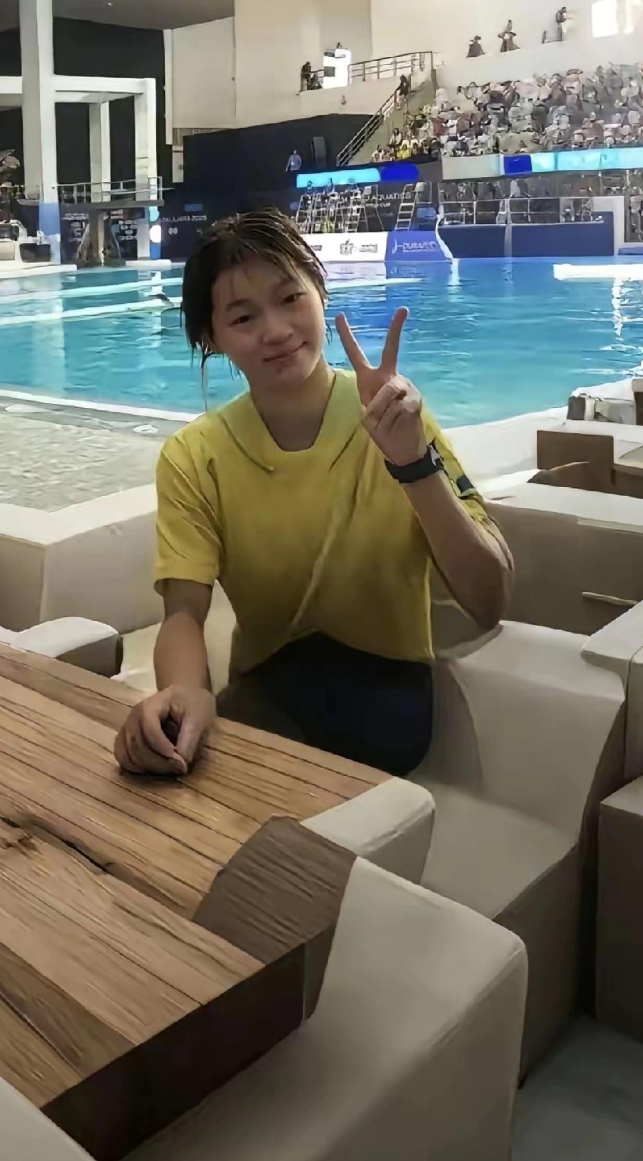 【全红婵泳池边比耶自拍太可爱!湿发+黄衣尽显青春活力,瘦身成功颜值又up啦~】