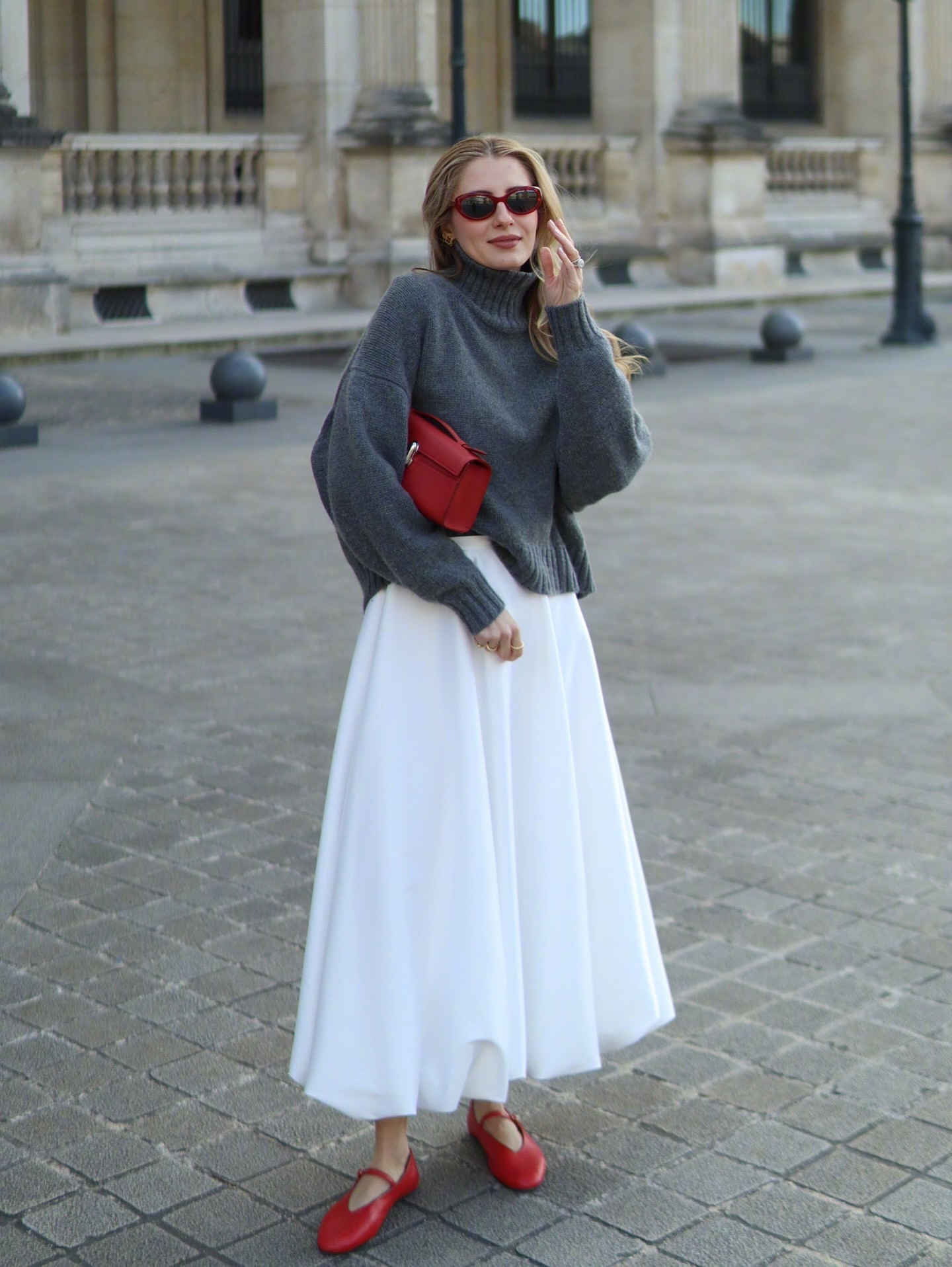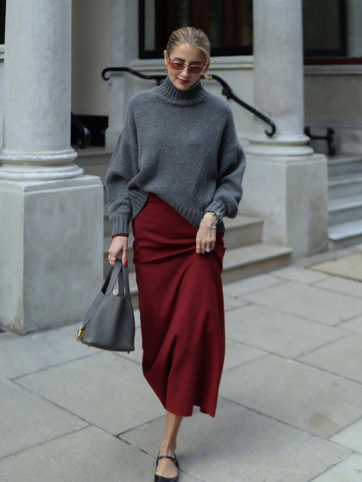 英国🇬🇧博主Valerie Kei的“高智感”配搭——一件灰色高领毛衣的