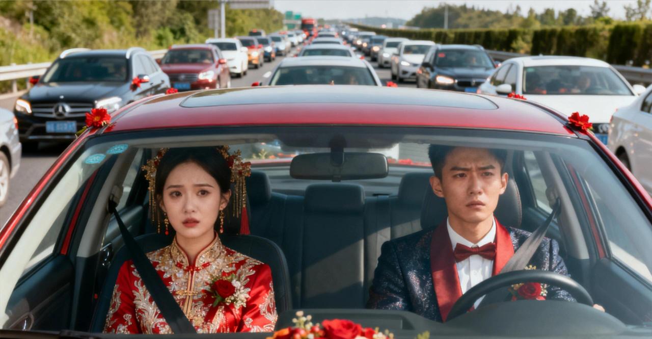 国庆这几天,江西一个村里办喜事,新郎新娘还在高速上堵着,家里酒席已经摆好了。结果宾客们没人动筷子,反而都在微信群里发消息:“新郎新娘路上注意安全,我们先吃了。” 这事儿现在真不少见。国庆“婚礼黄金周”撞上“出行最堵周”,再讲究的“吉时”也得给导航上那些深红色路段让路。 浙江有对新人在沪昆高速上,看着导航显示“还有300公里”直接沉默了。老家那边亲戚到齐、酒杯满上,他俩却困在充电站前头排队。新郎那句“早知道坐高铁了”,可真是说出了太多人的心声。 不过你发现没,现在接亲方式也在悄悄改变。 毕节有个小伙子,直接坐高铁去眉山接新娘,准时到达一点都不慌。宁夏还有个新娘更厉害,带着二十多个亲友组成“高铁送亲团”,视频在网上火了,大家都夸这做法又酷又聪明。 数据也说明问题——国庆期间铁路每天运送旅客超过1600万人次。在这么多人里头,那些戴着喜字、穿着红衣的高铁接亲队伍,成了今年特别的新风景。 这场全民大堵车,也让婚庆行业开始整新活了。有些团队现在提供“婚车+高铁票”双方案,看路况灵活选;靠近女方家的服务区酒店突然成了抢手货;连能跟车化妆的化妆师都变得特别受欢迎。 说到底,咱们总以为婚礼必须掐着点儿进行,可现在大家都明白了——再完美的计划也干不过大堵车。 菜凉了能再热,仪式从简也没关系。最暖心的还是电话那头那句“别急,安全第一”,还有小两口在堵车时互相打气的样子。这比什么排场都实在,这才是真正的“吉时”。 所以啊,要是你最近要办婚礼,记得提前规划,但也别被流程绑住了。婚礼最重要的不是准时走完所有环节,而是不管路上多折腾,你们最终牵着手站在了一起。这份经历,反而让婚姻的开端更难忘。