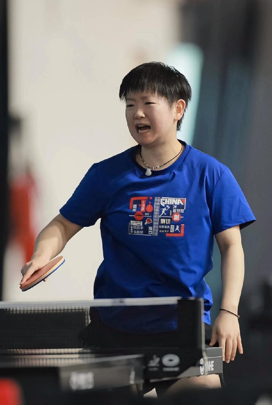 孙颖莎训练名场面!这表情包级别的抓拍,是被球“气到”的可爱莎宝没错了 国乒小