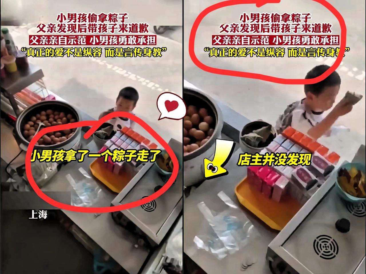 小男孩偷拿粽子,店主并没有发现,父亲发现后带孩子来道歉,当时店里人多,孩子害羞不肯开口,爸爸没逼他,反而 自己先示范,最后小男孩跟着爸爸的样子,鞠躬对店主阿姨说“对不起”! 好多家长遇到这种事可能会当场骂孩子,可这位爸爸没这么做。他那深深一躬,比说一百句“你要懂礼貌”都管用。 其实教育哪是站在高处说教啊,最有用的从来都是“我做给你看”的榜样。孩子看在眼里,自然会学在心里,这种潜移默化的影响,比任何训斥都深刻。 现在好多人总说不知道怎么教孩子,其实看看这位爸爸就懂了,家长的行动就是最好的教材。 你小时候,家里长辈有没有用这种“亲身示范”的方式教过你道理?来评论区说说吧!