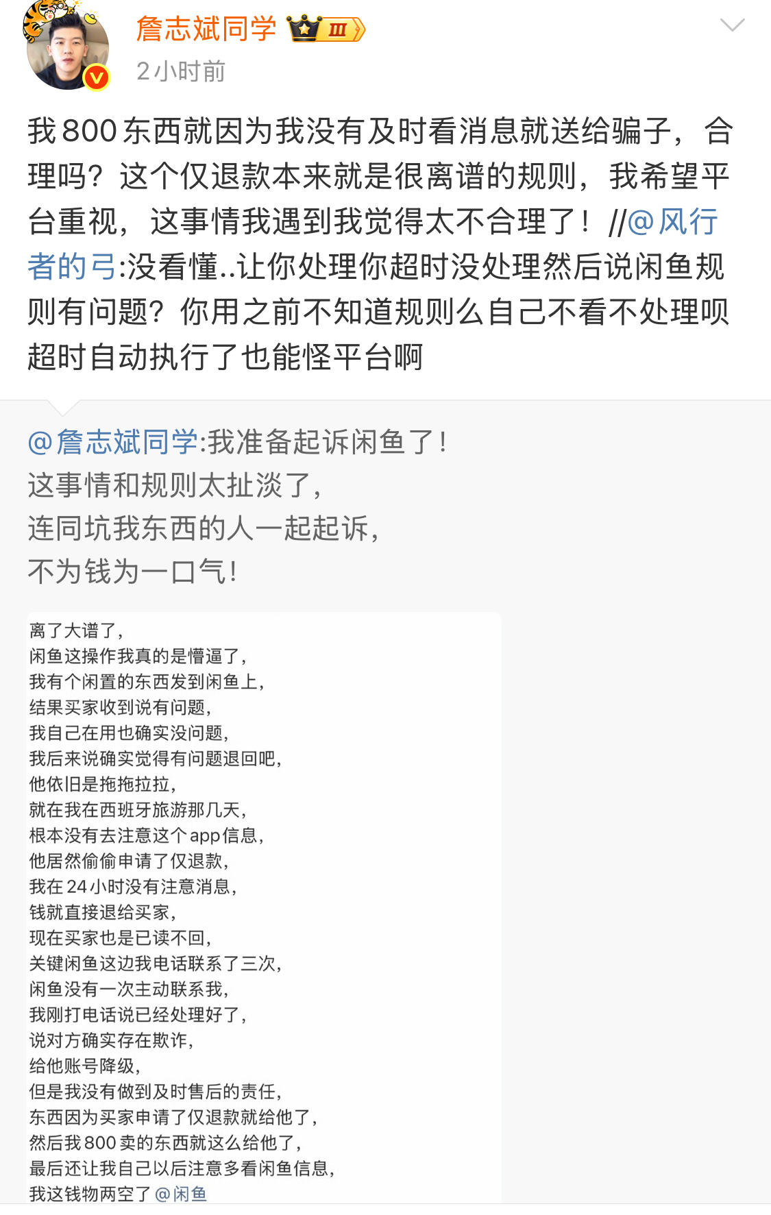 仅退款应该是本世纪最无耻的发明,拼多多都取消了,闲鱼偷师,不学好,太失望了。