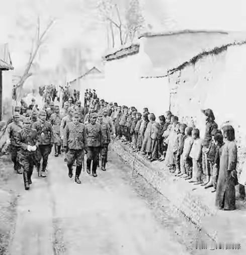 日本鬼子制造天镇大屠杀时留下的画面,这些凶残的日本鬼子进城之后,耀武扬威的走在街路上,老百姓站在墙根下,就像待宰的羔羊一样,显得是那么的无助,那么的可怜,而且这里的多数人,都是年幼的儿童和女人,日本鬼子在天镇疯狂屠杀无辜的老百姓,残忍杀害老百姓几千人。