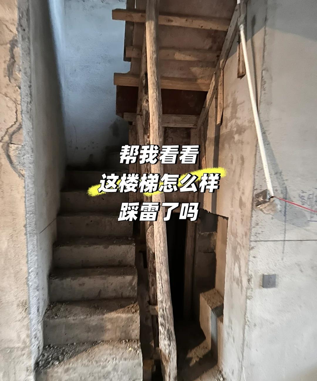 这是我见过“最窄”的楼梯[发怒][发怒] 只有60公分宽,只能走一人, 稍微胖一点的朋友,上下都很困难, 就别说扶着老人小孩上下了[捂脸][捂脸] 说实话,自建房的楼梯总被忽略, 甚至有人不愿意给楼梯做休息平台, 对于踏步的尺寸漠不关心, 等到房子建好,才发现掉坑了 下面这个房子就是如此, 不仅空间很小,而且没有休息平台, 休息平台的位置做成了旋转踏步, 真的是步步惊心,非常危险, 到了今天这个地步, 做扶手都没地方安放, 搞得天天愁眉苦眼[伤心][伤心] 对于你们比较懂行的朋友, 这样的楼梯做法, 你怎么看,有没有什么改进的办法? #万能生活指南# #农村自建房# #晒图笔记大赛#