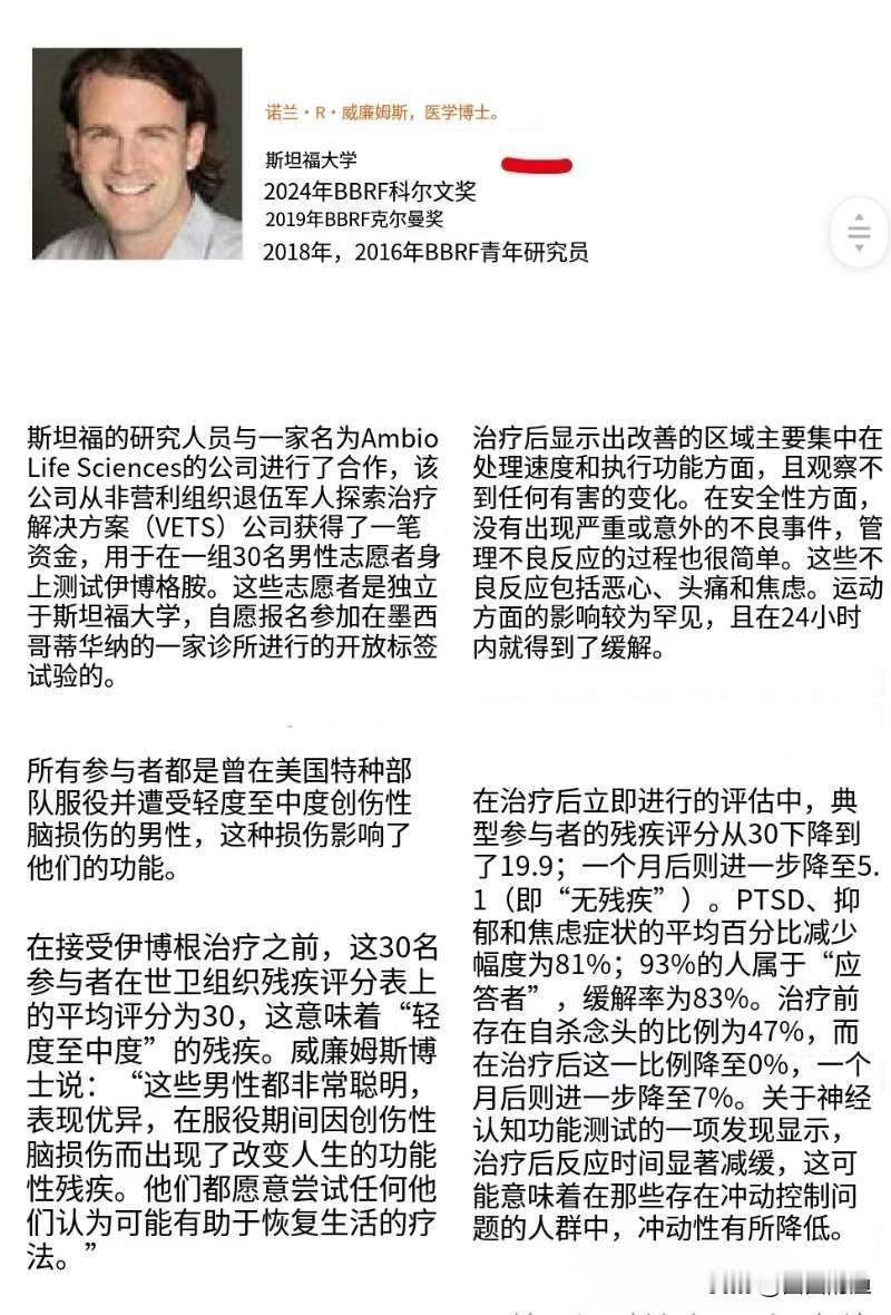 帮无数人对抗抑郁的专家,自己却没能走出来... 美国斯坦福大学精神病学家诺兰·威廉姆斯博士(42岁),抑郁症创新疗法(如脑刺激)前沿研究者,不幸于今年10月自杀离世。 天天研究抑郁、接触病人的巨大痛苦,很多都是负能量,再加上科研压力山大,想快点出成果救人,最后把他自己也压垮了。 这位致力于驱散心灵阴霾的“耀眼明星”陨落,他救治了太多的抑郁症病人!是精神健康领域的巨大损失,简直太可惜了!