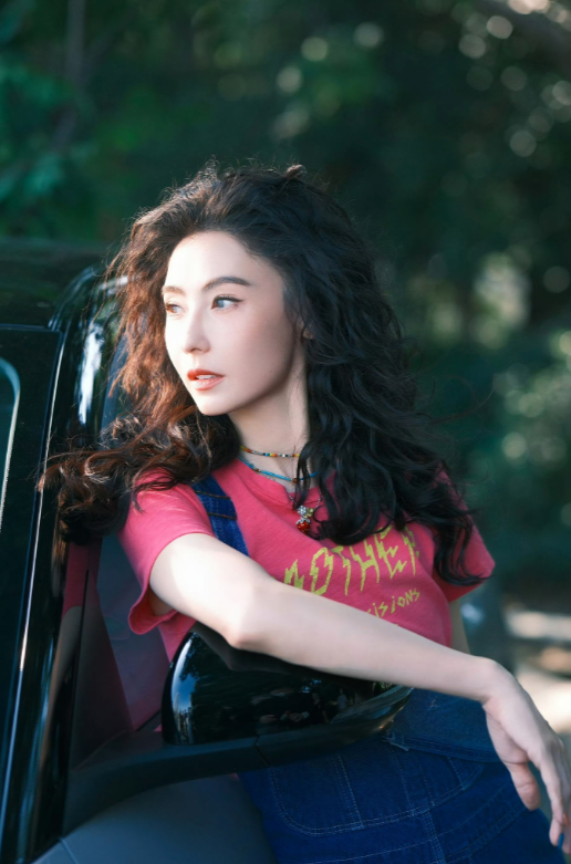 她这身穿搭也特别减龄,羊毛卷配背带裤,又甜又飒。