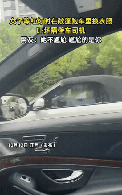 江西一女子等红灯时,在敞篷跑车里换衣服,就算只剩内衣,也非常淡定,完全不在乎路人眼光,可这一幕,却把隔壁车司机吓坏了,刚想捂眼睛,却想到还要开车,只能无奈放弃,网友:只要自己不尴尬,尴尬的就是别人! 画面中,一辆敞篷跑车停在等红灯时,车里那位女士竟然利用这几十秒的等待时间,淡定自若地开始换衣服!她神情专注,动作流畅,即使身上只剩下了内衣,那份从容,简直像在自家的卧室里一样。 旁边车道的那位司机,这突如其来的风景,把他惊得是措手不及。 他的第一反应和所有正直的普通人一样:赶紧非礼勿视!手都已经条件反射地抬起来了,眼看就要捂住眼睛。“等等,我还在开车啊!手捂眼睛,车怎么开” 他那抬起的手,只能尴尬地在空中悬停半秒,然后默默地、放回了方向盘上。 网友“:只要自己不尴尬,尴尬的就是别人”;