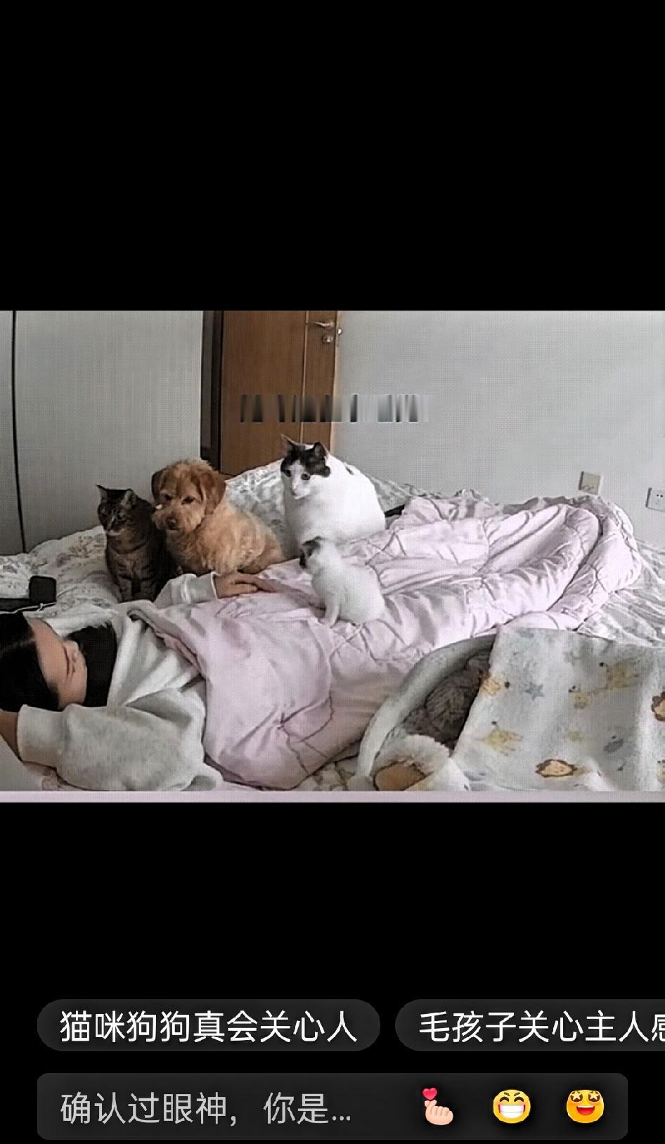 笑不活了!”辽宁一名女子养了三只猫咪一只狗狗,这天,女子感冒请假没上班,窝在床上休息,结果家里三只猫一只狗直接组团“查房”。 全挤到床上围成圈盯着她,那眼神里满是“不可思议”,活像在审:“你咋回事?今天居然不上班还不起床?” 网友瞬间炸了锅,有人盯着画面笑喷:“后面那只猫咋比狗还壮实?怕不是偷偷抢了狗饭吃吧!”还有人补刀戳中笑点:“别猜了,它们哪是担心,分明在琢磨‘主人你可别病垮,不然罐罐、肉干谁给买?’” 可笑着笑着就暖到心里了——平时都是主人早起喂粮、铲屎,下班回家先撸毛,围着毛孩子转。真等主人不舒服躺床上不动了,它们没吵没闹,就安安静静待着盯人,哪怕尾巴轻轻扫一下,都是在“探探你还好不好”。 虽说毛孩子不会说人话,可这份“你不对劲,我得守着你”的执着,比啥都实在。总有人说养宠物费钱费力,是单向付出,可只有养过的才懂:你给它们一个遮风挡雨的小窝,它们就用一辈子的在意回应你。 女子这哪是被“围观”,分明是被毛孩子用专属方式心疼着!你家毛孩子在你不舒服时,有没有过啥又傻又暖的小举动呀?