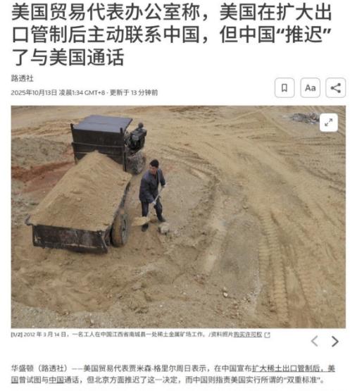 中国拒绝了美国的通话请求!10月13日,根据路透社报道,在我们反制之后,美国贸易代表贾米森·格里尔表示:在中国宣布扩大稀土出口管制后,美国曾主动联系中方希望进行电话沟通,但中方拒绝了。格里尔强调,美国事前并未收到任何通知,是从公开渠道得知消息后才紧急联系中方。 其实明眼人都能看出来,美国这急吼吼的样子,根本不是真为了沟通,更像是慌了神。 稀土这东西可不是普通货物,小到消费电子,大到战斗机,哪儿都离不了,美国的高科技产业和军工生产线,早就把这东西当成了命脉。 现在中方突然加码管制,他们那边的产业链说不定已经开始抖了,能不急着找上门来吗? 有意思的是,中方压根没打算提前给美国透信,反而通过出口管制的对话渠道通知了其他国家。这操作本身就很有说法,不是没渠道,也不是忘了说,就是没把美国算在需要提前知会的名单里。 格里尔嘴里说的 “意外”,恐怕早就在中方的预料之中,甚至可以说是故意留给他的反应时间。 美国这边还在嘴硬,格里尔说中方是 “先发制人”,可他们怎么不想想,之前又是怎么做的?马德里会谈刚过没多久,美国转头就扩大实体清单,对一堆中企搞 “穿透性制裁”,压根没把中方的关切当回事。 那时候怎么没想过要主动沟通?怎么没想过给中方留余地?现在中方拿出反制措施了,倒想起要通话了,哪有这么便宜的事儿。 而且美国说被拒的时候,用词还挺委婉,说是 “推迟”,估计是不想承认自己热脸贴了冷屁股。但不管怎么包装,事实就是中方没接这个茬。 毕竟现在的情况是,不是美国想谈,中方就得配合。之前那么多轮磋商,稀土贸易好不容易稳定下来,是美国自己先破坏了氛围,现在想靠一个电话就把问题抹平,未免太天真了。 格里尔这通表态出来没一会儿,特朗普又出来放话,说愿意和中国达成协议平息紧张,这前后态度转得比翻书还快。 说白了,白宫那边急着要个结果,格里尔找中方通话,说不定就是想赶紧有个交代,证明自己没闲着。可中方不吃这一套,拒绝得干脆利落,没给任何含糊的空间。 中方不是不能谈,只是现在没到谈的时候,更不会顺着美国的节奏走。稀土出口管制这步棋,本来就是一套完整的战略规划里的一环,既要守住国家利益,也是在全球供应链里亮明态度。 美国要是真有诚意,就该先撤回那些针对中国高科技领域的歧视性措施,而不是光靠打个电话走个过场。 之前美国总觉得自己掌握着主动权,想施压就施压,想谈判就谈判,中方都得陪着。可这次不一样了,稀土管制的规则由中方定,沟通的时机也得中方说了算。 美国习惯了用制裁和清单当筹码,却忘了自己早就被稀土捆住了手脚,短期内根本找不到能替代的供应链。 说穿了,这不是一次简单的通话被拒,是中方亮明了态度:相互尊重不是嘴上说说的,得拿出实际行动。 美国要是还抱着以前那种 “我提要求你满足” 的心态,以后这样的闭门羹恐怕还得吃。马德里会谈之后的账还没算清,又想来谈新的条件,哪有这么不讲道理的。 格里尔抱怨没收到通知,可他怎么不想想,美国出台那些针对中企的制裁措施时,提前和中方沟通过吗?还不是说落地就落地,根本没给商量的余地。 现在轮到自己的利益受影响了,倒开始讲究起 “提前告知” 的规矩,这双标的嘴脸也太明显了。 中方拒绝通话,其实也是给美国提个醒:经贸博弈不是一厢情愿的游戏,想靠着施压和威胁占便宜的时代早就过去了。 稀土这张牌,中方既然敢打出来,就不怕美国折腾。美国要是真为自己的产业着想,与其对着媒体抱怨被拒,不如好好想想怎么拿出能让中方认可的诚意。 特朗普想靠放话缓和局势,可光说不做没用。中方现在心里门儿清,什么时候谈、谈什么、怎么谈,主动权得握在自己手里。美国要是不撤回那些不合理的制裁,不放弃对中企的打压,就算接通了电话,也谈不出任何结果。 这事儿往深了说,也是全球经济话语权的变化。以前美国说一不二,现在中方也能根据自己的节奏出牌了。稀土作为关键资源,本来就该由资源输出方掌握主导权,美国以前靠着霸权强行压价、随意提要求,现在终于尝到了被动的滋味。 格里尔要是真着急,就该去催催白宫,把那些针对中国的实体清单撤了,把 “穿透性制裁” 停了,用务实的态度来谈。 不然就算再打十次八次电话,结果还是一样。中方现在不吃 “急病乱投医” 那一套,要谈就得拿出真东西,光靠抱怨和指责,根本解决不了问题。 美国这回算是彻底明白,中方的反制不是说说而已,拒绝通话也不是一时冲动,是深思熟虑后的态度。 以后想和中国打交道,就得收起以前的傲慢,按规矩来,按对等的方式来。不然的话,下一次被拒的可能就不只是一个电话了。