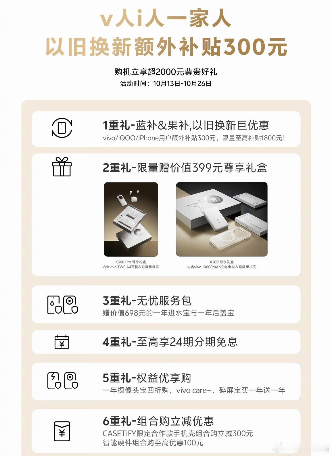 vivo X300 正式开售,起售价 4399 元,首销期间支持 24 期免息,还有以旧换新补贴和老用户礼遇。整体价格策略挺友好,对想换机的老用户来说压力不算大。