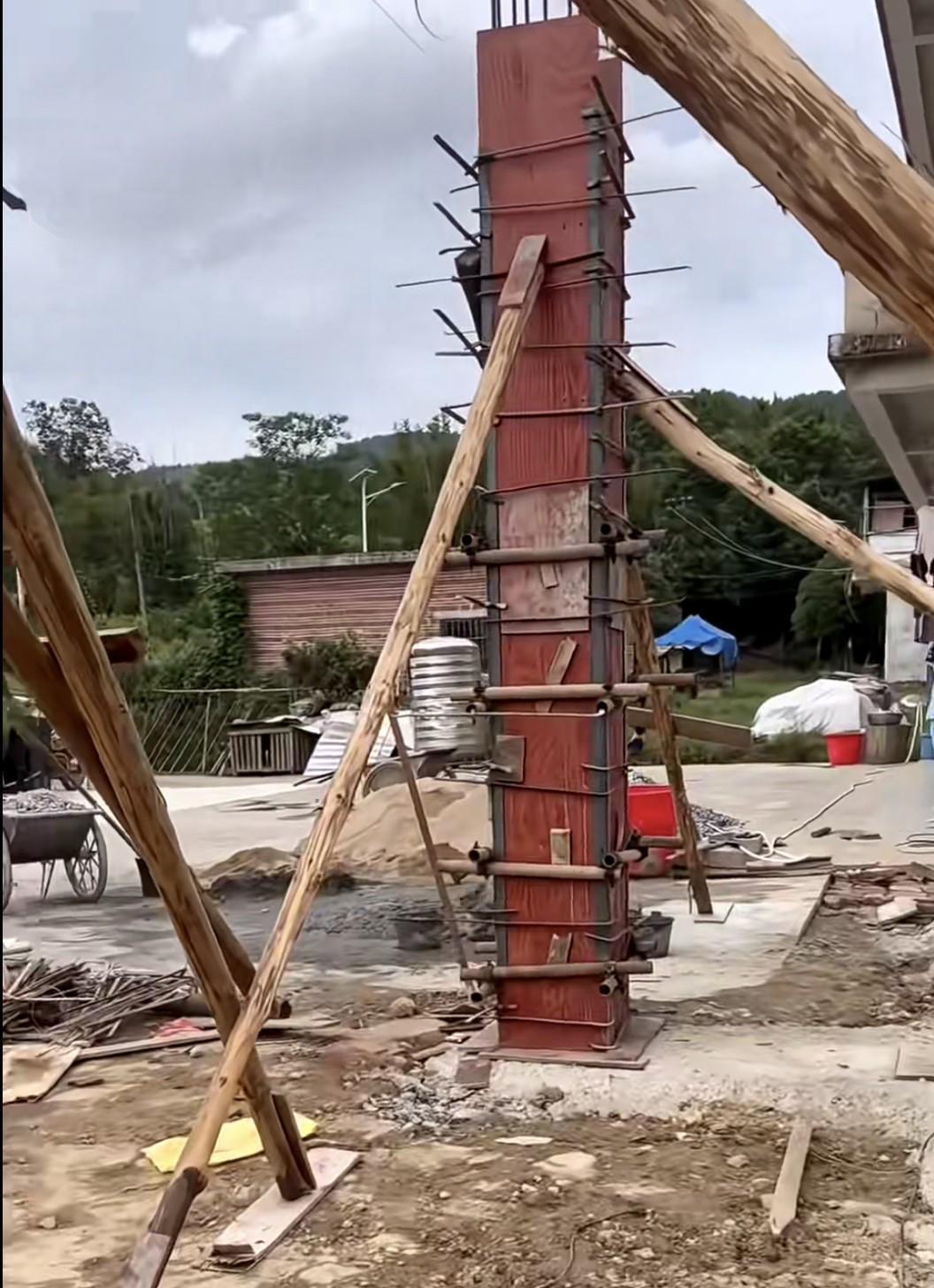 一个敢想,一个舍得花钱[发怒][发怒] 居然想到用角铁,来包柱子角, 这样做出来的柱子超美观, 对于框架结构来说, 柱子和梁必须提前施工, 必须先支护模板,然后浇筑混凝土, 其中最害怕的事情,就是爆模, 所以这个工头想到用角铁, 放在模板四角加固, 同时防止转角拼缝漏浆, 说实话,这种角铁加固模板的做法, 我是头回见 ,虽然浪费一点材料, 但拆模后的效果真不错, 而且避免了浇筑爆模的产生; 唯一美中不足的是, 柱子表面有些蜂窝麻面, 可能是振捣不够充分, 对于你们比较懂建房的朋友, 这样角铁加固模板的做法, 你怎么看? #农村自建房# #秋季生活打卡季# #万能生活指南#