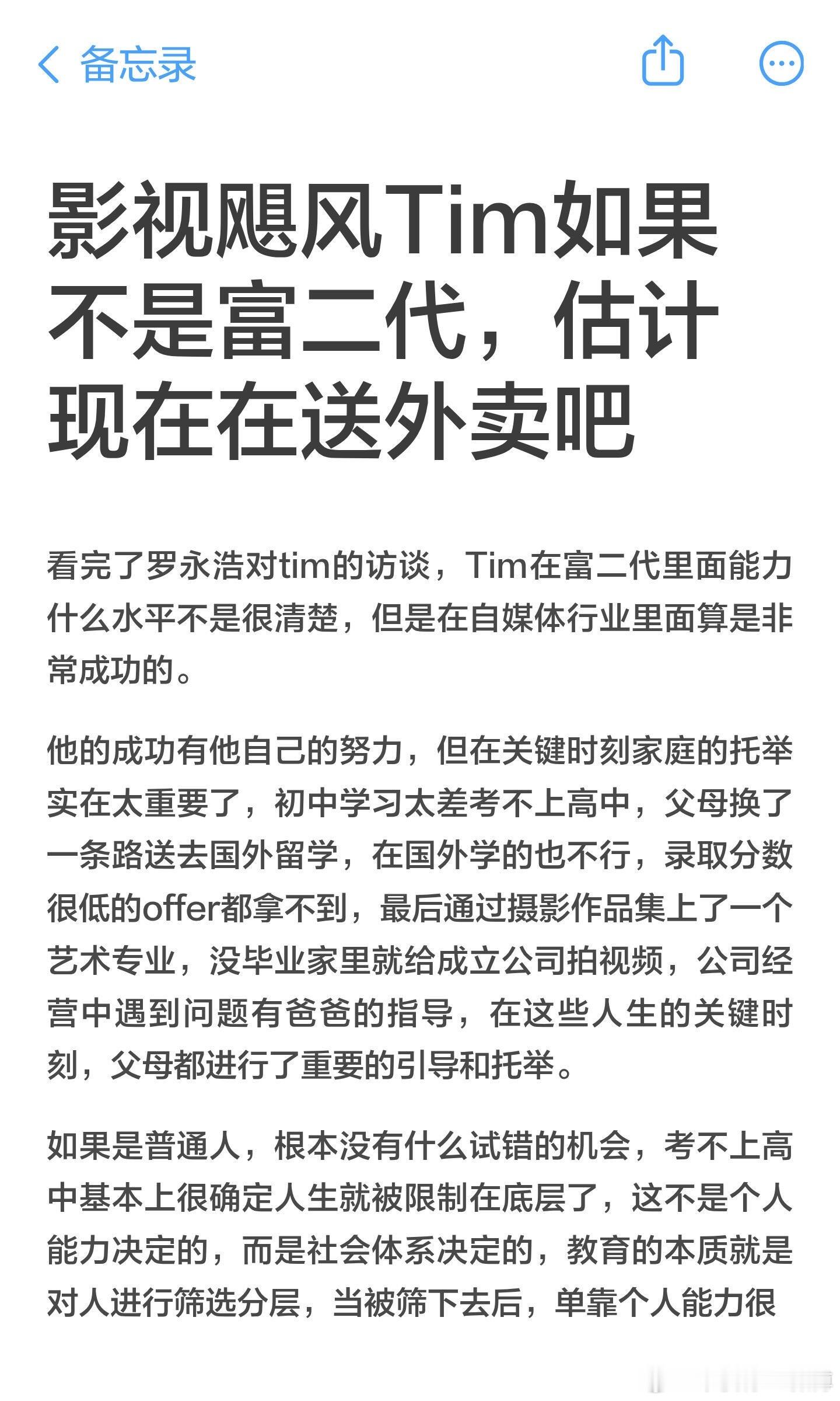 影视飓风Tim如果不是富二代,估计现在在送外卖。