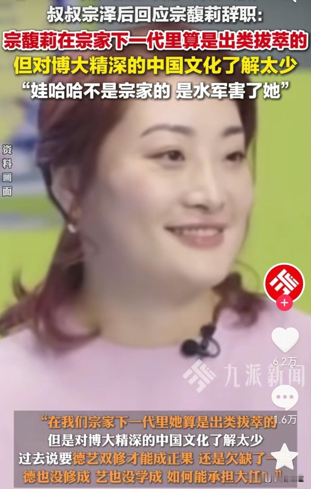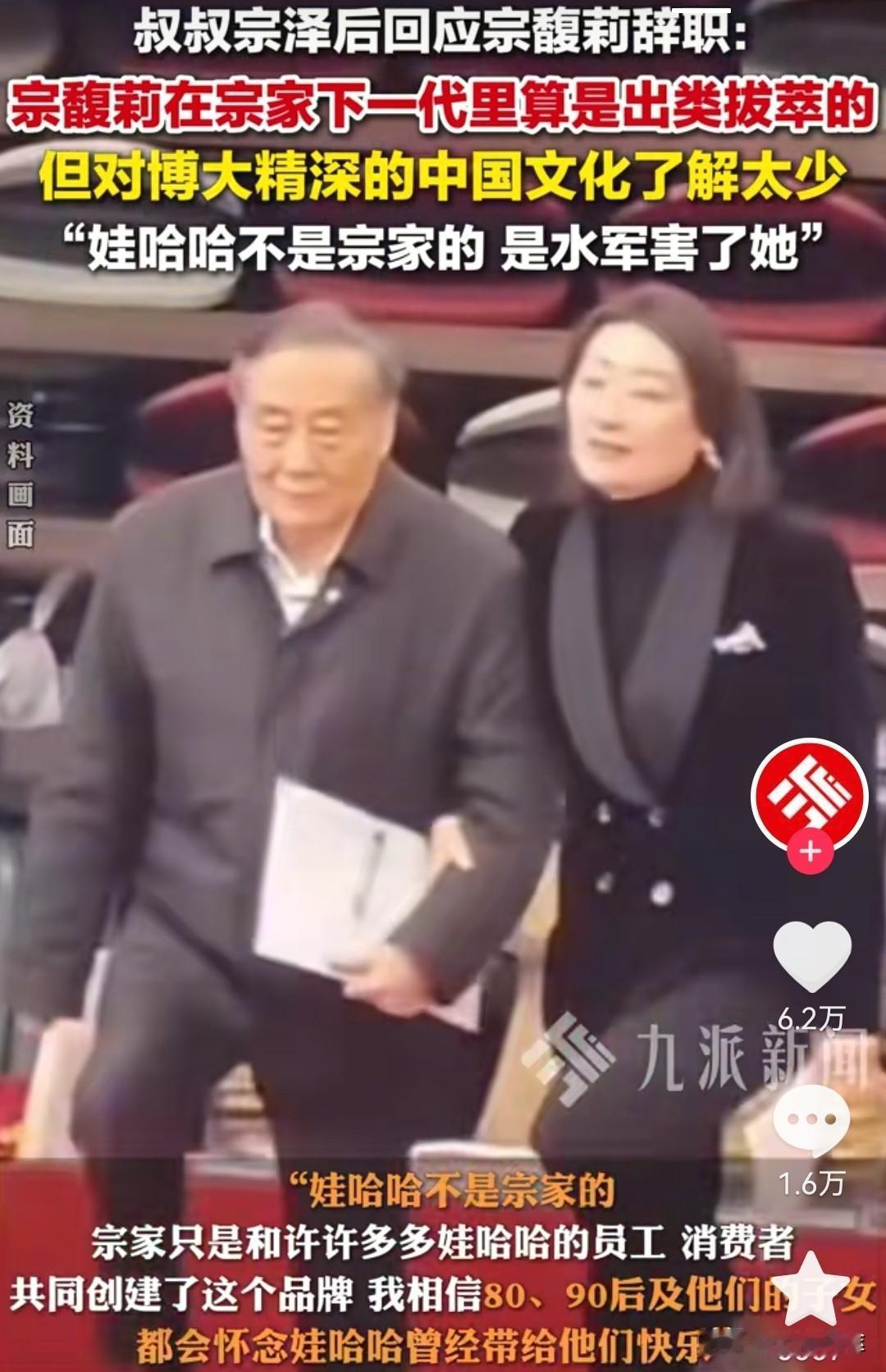 宗馥莉就是不懂老宗为什么让她来打最后一笔钱,本来就是为了稳固她的地位,证明她愿意维持这艘大船,结果她就是不打,甚至为了赢还把老宗的破事全抖出来了,当年哇哈哈和农夫山泉商战那么激烈的时候人家都没把这破事抖出来,现在让自己女儿爆出来了,搞得股东离心离德,个个都想从哇哈哈这艘大船上拆板子盖自己的小船,估计走不远了。 娃哈哈 宗馥莉将把娃哈哈带向何方?