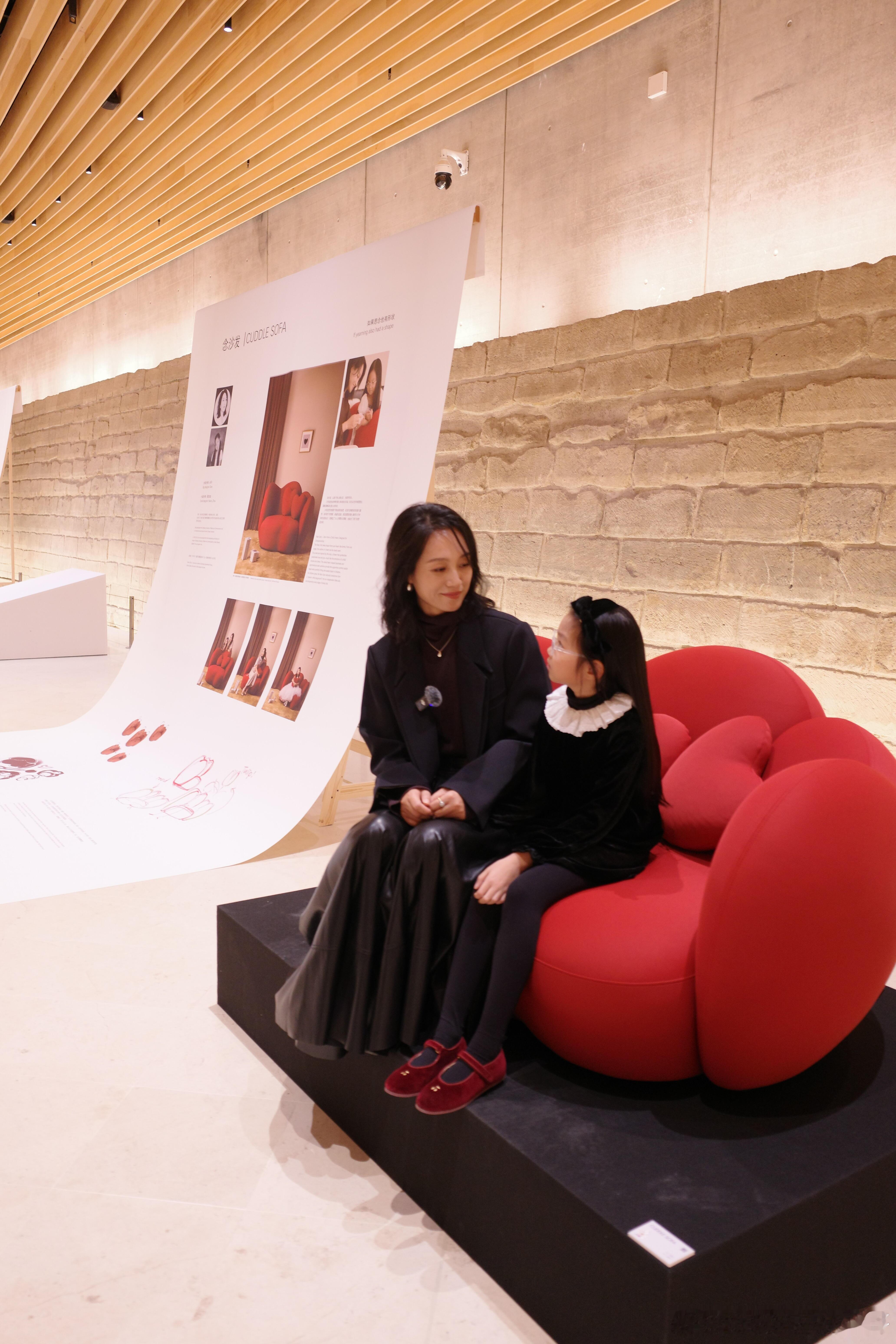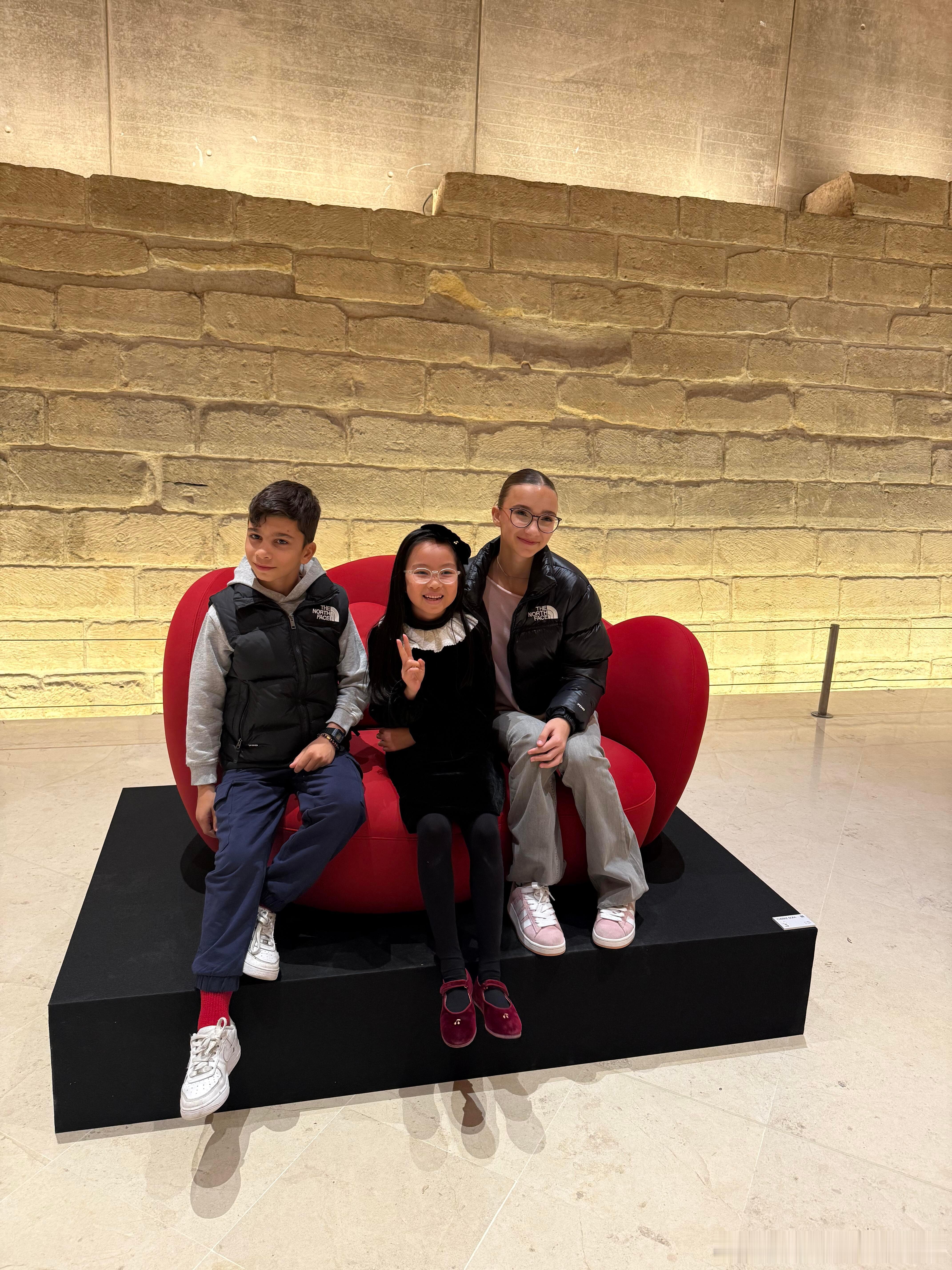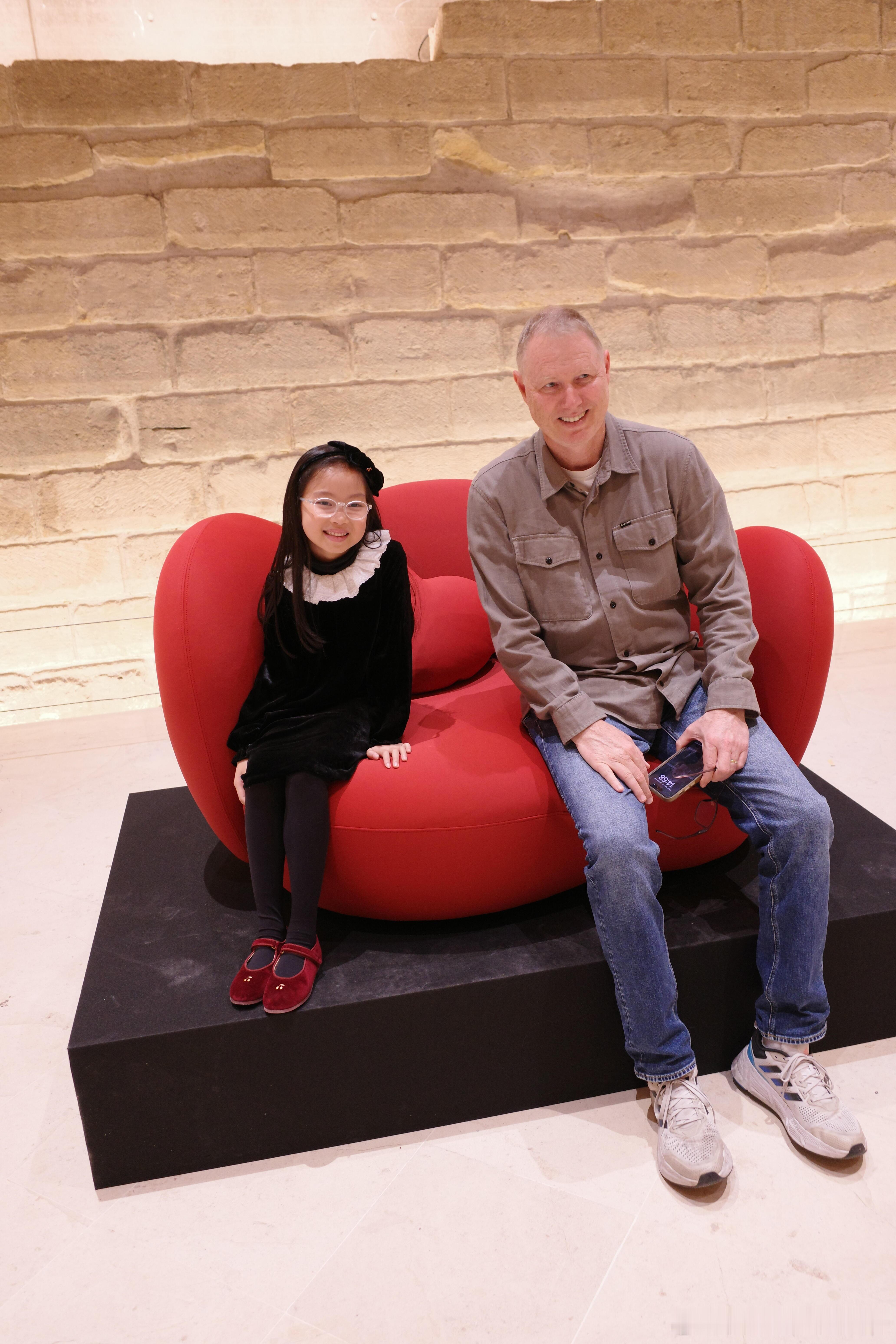 朱丹女儿设计的沙发在卢浮宫展出朱丹女儿作品在卢浮宫展出 朱丹女儿设计的沙发在卢浮宫展出,女儿戴着眼镜很像爸爸