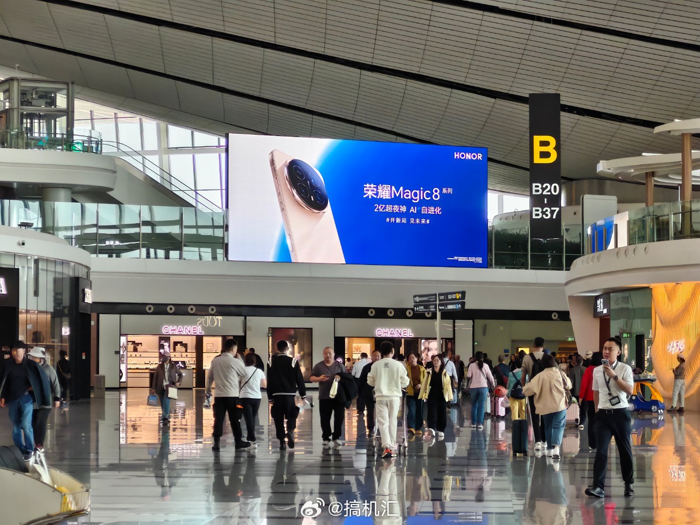 北京大兴机场荣耀Magic8新机海报,2亿超夜神,AI自进化!一起期待明天发布。