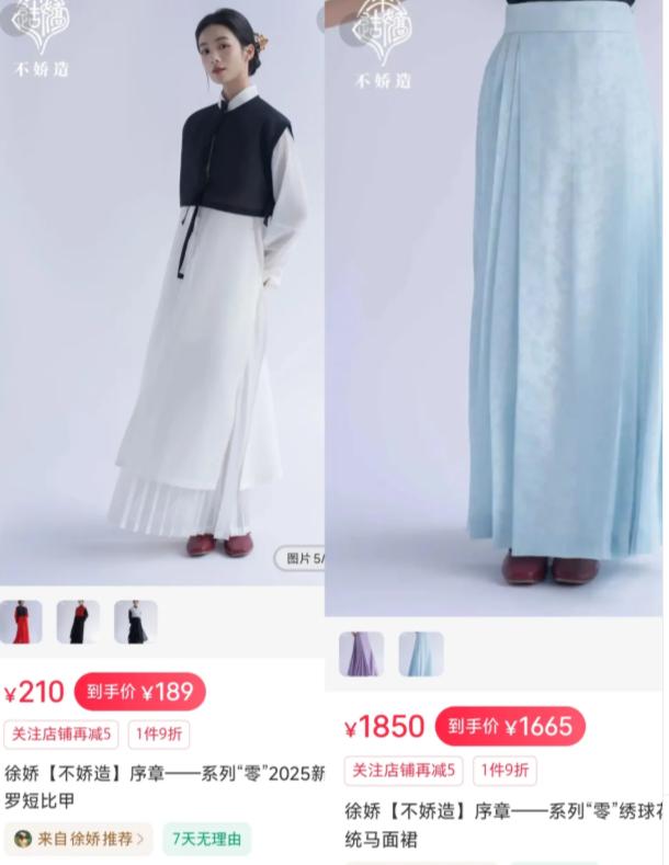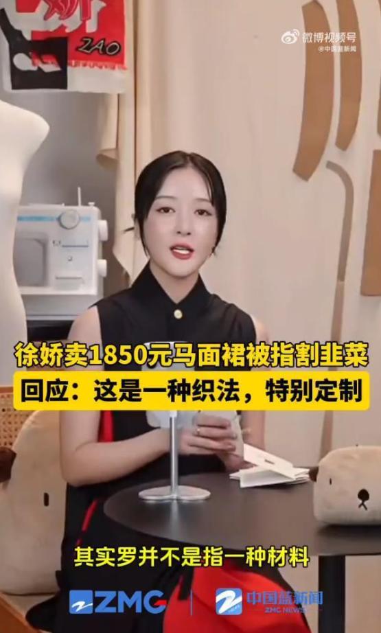 徐娇卖1850元马面裙被指“割韭菜”,宣传的时候说“绫罗绸缎”,商品标注面料是1