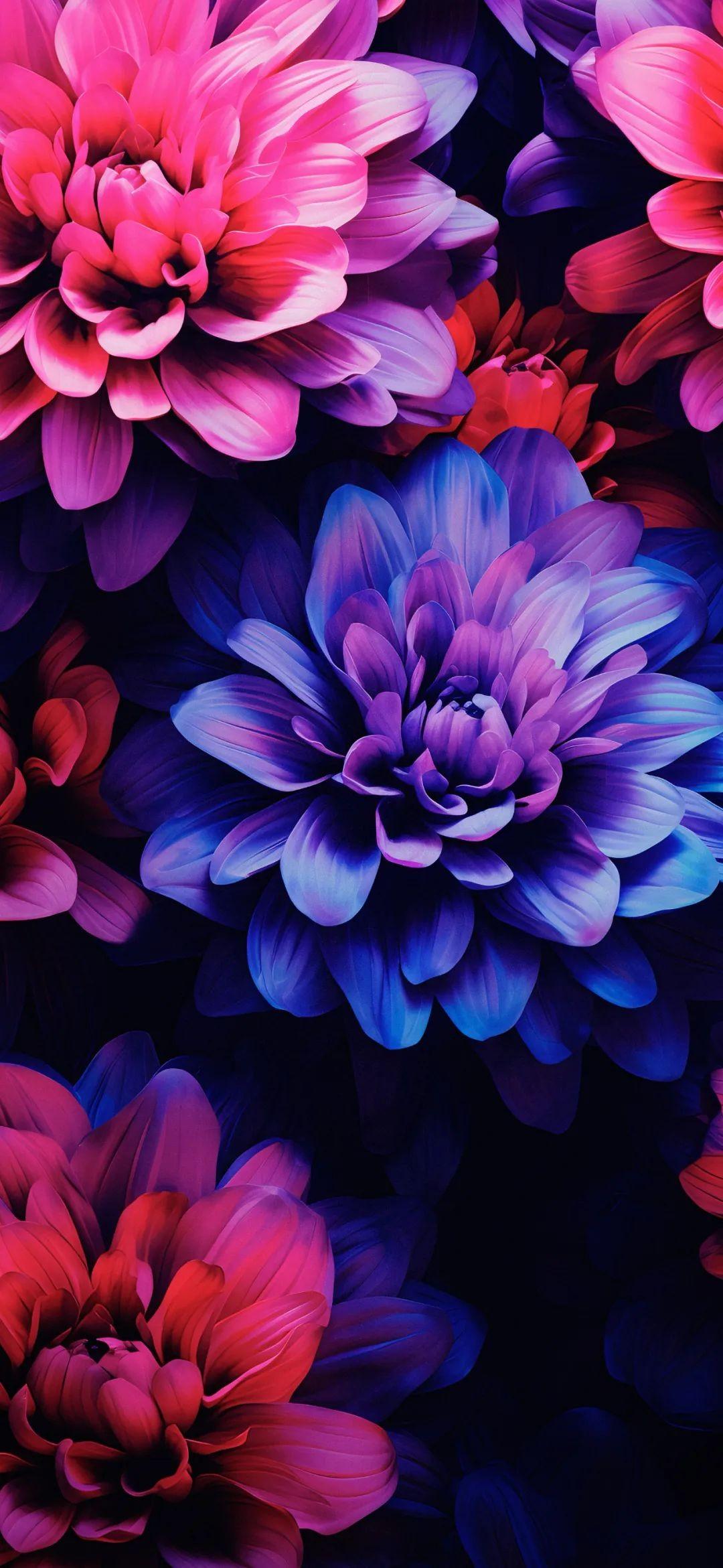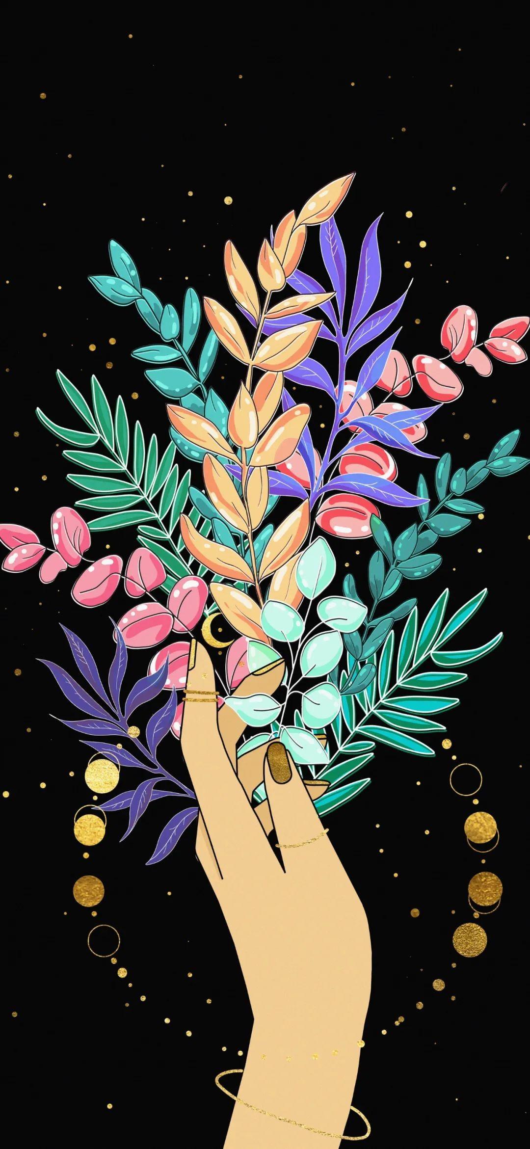 换新壁纸啦。 深蓝底色像夜空铺开,紫与玫红层层晕染,花瓣仿佛有丝绒的触感,光影细腻得像在呼吸。花朵从画面里盛放出来,层次饱满又克制,既张扬又高级。看久了心定下来,手机一亮就有氛围感。 低饱和霓虹配色,INS风的高级花卉插画。 手机壁纸 高级感