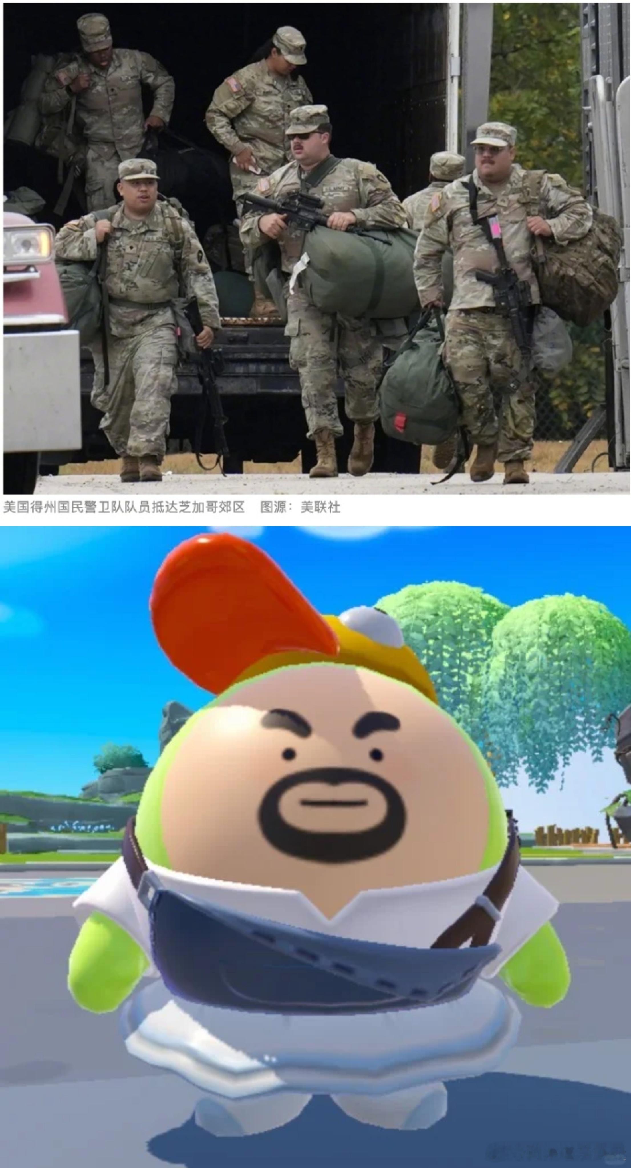 美军肥胖照火遍全网我军战士:王者荣耀(左)对方战友:蛋仔派对(右)