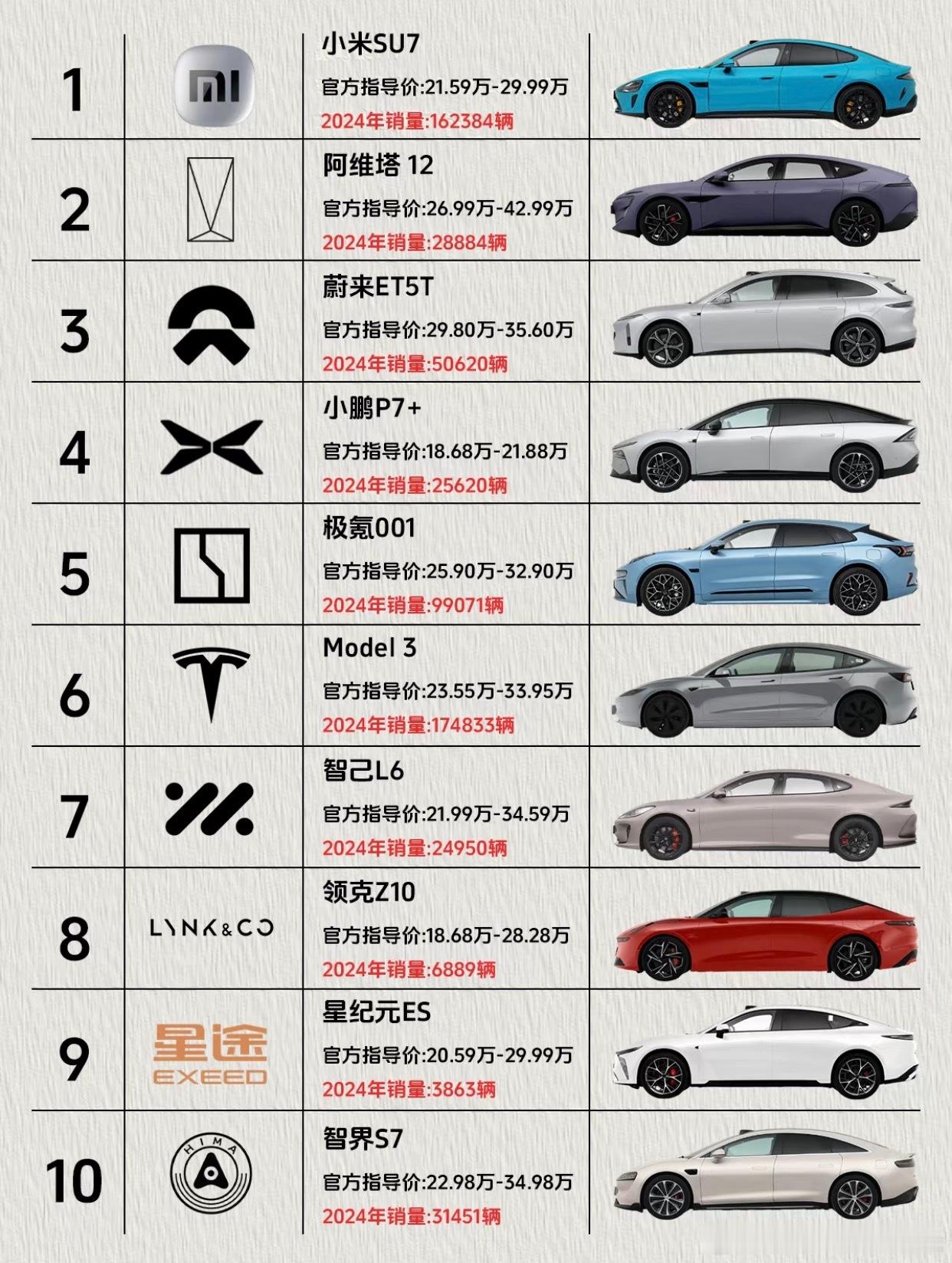 小米SU7和Model 3绝对是顶流!SU7起步价21.59万,年销16万+辆;Model 3虽稍贵(23.55万起),但销量超17万辆!说明大众眼光不会错~颜值和实力并存,通勤代步首选。