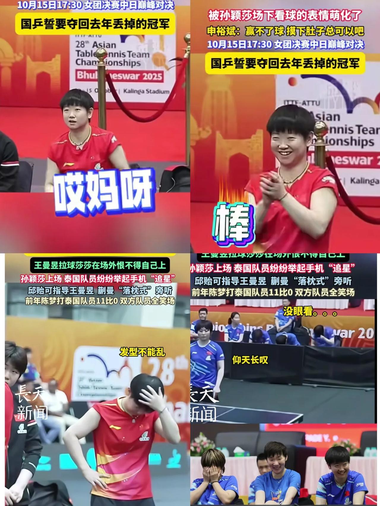 可了不得了,这孩子! “亚锦赛”中国女团对阵韩国女团,莎莎一马当先,3:1战胜申裕斌,那表现,杠杠的! 轮到蔓玉对阵金娜英,刚开始金娜英攻势凶猛,蔓玉有点招架不住。这时邱指在一旁不停指导,莎莎在旁边眼睛滴溜溜转,听得那叫一个认真,瞧那模样,仿佛在琢磨邱指哪儿说得不够到位,嘴巴都张了张,像是在说:“你都说了,给我留点啊!” 这“小孙指导”当得还挺上瘾,完了还脆生生地给蔓玉加油,这一举一动,太招人喜欢啦! 赛后,好多运动员和球迷都找莎莎签名合影,莎莎是真的棒!她就是这样,不知不觉就能把人萌翻! 好喜欢这样的莎莎!不知不觉中她就把你萌翻了![大笑] 大家说说,莎莎哪点最让你喜欢呢?