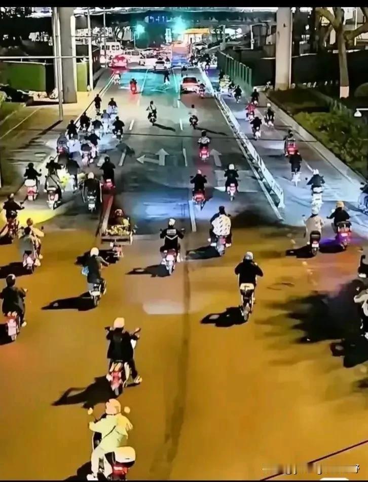 广州为什么会有电鸡之城这个称号呢?从这张监控画面就能够看出来了。画面中,电鸡大军,浩浩荡荡的向着前方进发,三条机动车道全部被占据了。如果汽车也在中间通行的话,场面会显得非常的混乱和危险。 这些年,随着广州放开对电动车的限制,以及电动车本身灵活,出行方便等优势,使得越来越多生活在广州的人都有了自己的一台电鸡。这么多车辆都行驶在路上,而且大家都不怎么遵守秩序的话,结果就会造成交通路况再次混乱起来。