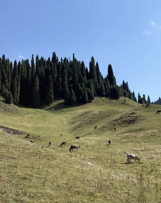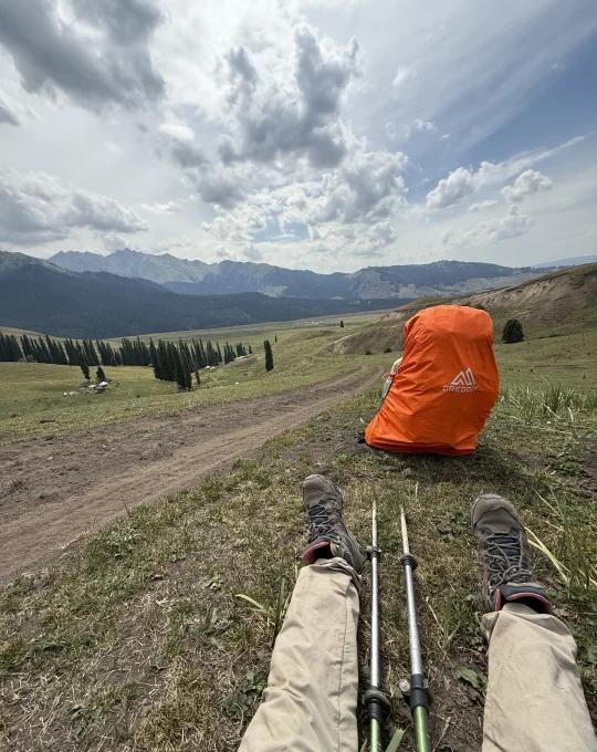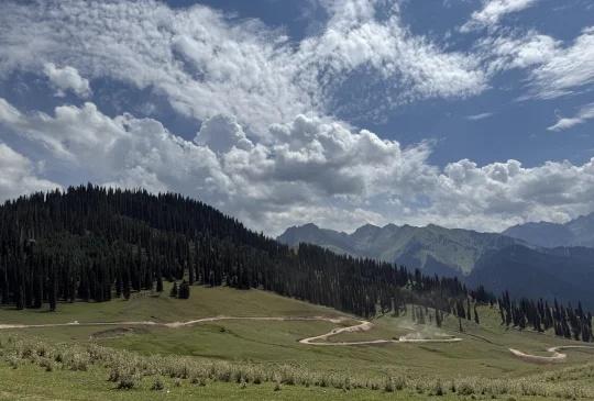 喀拉峻反穿大环线四天三夜(上) 我们有4个人,所以选择直接包车,计划走完喀拉峻再走乌孙。 Day 0:伊宁-特克斯-库尔德宁景区(2公里,约1小时) 当天从伊宁出发,先前往特克斯办理进山证,随后驱车前往库尔德宁景区,抵达时已下午6点多。原本打算直接在景区扎营,却因未提前做好攻略,得知库尔德宁仅允许在指定区域扎营,无奈只能拆帐篷往山上徒步2公里,最终在一家牧民处扎营,收费20元/顶帐篷。 Day 1:库尔德宁景区-恰西营地(20公里,约10小时) 首日徒步难度较大,个人负重38斤,队友人均45斤往上,这天沿途景色很好,途中想抄近路反而绕远,部分路段被牧民铁丝网阻隔,建议还是跟着轨迹走。恰西营地位于景区内,靠近河流处或有免费扎营点,我们选择在商家平台上扎营,每个平台收费50元,可容纳四顶帐篷。营地有信号有补给还可以洗澡。 Day 2:恰西营地-塔里木营地(22公里,11.5小时) 从恰西景区出发,经木栈道后转入机耕路,沿途灰尘较大且全程暴晒。到达塔里木营地,听牧民说附近有野猪出没,原计划在商户家扎营,但临时被要求加价至每顶50元,且无厕所、还停水,我们便转至桥对面的草坪免费扎营。幸运的是,偶遇了在此露营的本地人,还收到了他们赠送的大西瓜,太幸福了。夜晚更在塔里木看到了银河,手机可以直接拍出来,非常美,第一次见银河。 💔碎碎念:走完两天脚已经起水泡了,手戴着手套太薄也被晒分层了,感受就是风景很美,但是为啥要背这么重! 外人节 户外48小时 现在徒步正好 徒步圈 徒步丈量世界 自然的入口就是生活的出口 我的计划是一直自由 徒步 重装