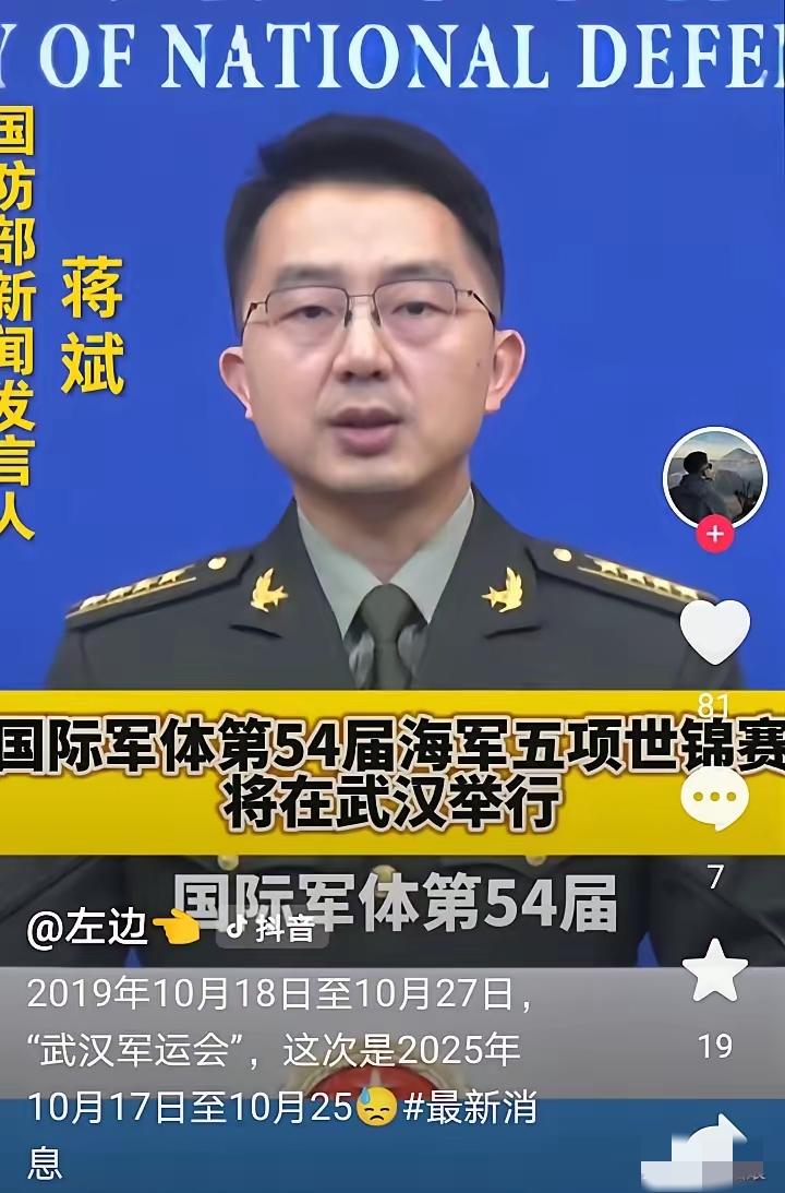 对,你没看错 武汉又又又又要开军运会了, 熟悉的节点,熟悉的配方, 熟悉味道。 但别瞎猜了,这次是正儿八经的国际军事体育盛会,2025年10月18到27号办,预计110多个国家、8000多运动员来参赛呢。 军运会本来就是“军人奥运会”,宗旨是“体育传友谊”,哪来那么多乱七八糟的说法[__LINK_ICON]。五年前的事早有公论,现在还揪着不放纯属多余。武汉有过一次办赛经验,场馆升级、筹备工作都门儿清,肯定能办得更稳。 至于谁来参赛,那是各国自己的选择,咱们办赛的核心是展形象、促交流。与其担心没用的,不如期待咱们的军人运动员拿奖牌,看看军事五项这些特色项目多热血。你准备关注这次军运会的哪个项目?