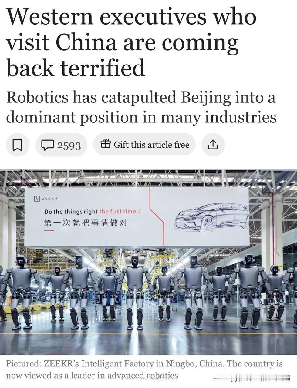 又一则让亲美派心梗,而让爱国国人为之振奋的消息! 每日电讯报昨天刊发了一篇关于中国科技生产力的文章 “西方科技公司的高管们在一次中国之行后感到震惊” 福特公司的首席执行官吉姆·法利表示,如果他们在竞争中失利,公司就没有未来——中国汽车在质量、技术和成本方面都超过了西方汽车。 另外两位西方能源公司的高管对“黑灯工厂”感到惊讶。中国的机器人数量已增至29.5万台,美国为3.4万台,英国为2500台。 视频显示了上海港无人驾驶物流输送机器人为集装箱船服务的情况。 #大疆硬刚美国防部# #热点观点#