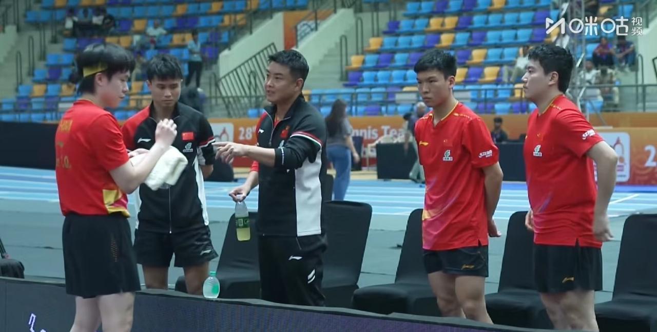 大头也太好认了, 不用看上半身, 就能认出来, 白得太突出了, 跟其他几个人不在一个图层, 话说男队的氛围怎么这么严肃呀! 立马想到了刘国梁的:嘻嘻哈哈等于…… 这是从小被教育成这样的吗? 这跟上午的女队形成了鲜明的对比, 女队确实更强点, 压力没这么大!