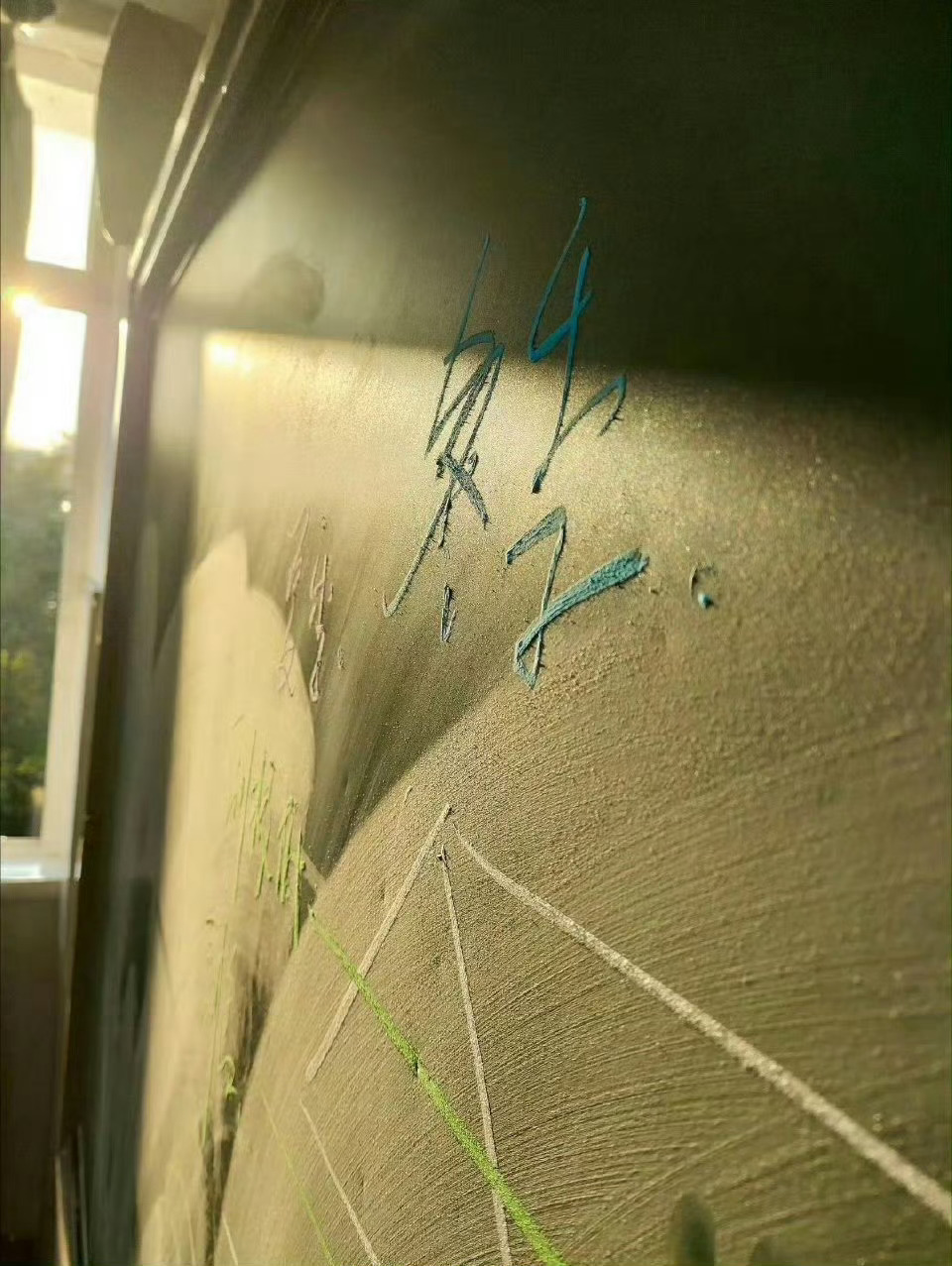 老师写粉笔字太用力了🤣阳光映照下就像是浮雕!