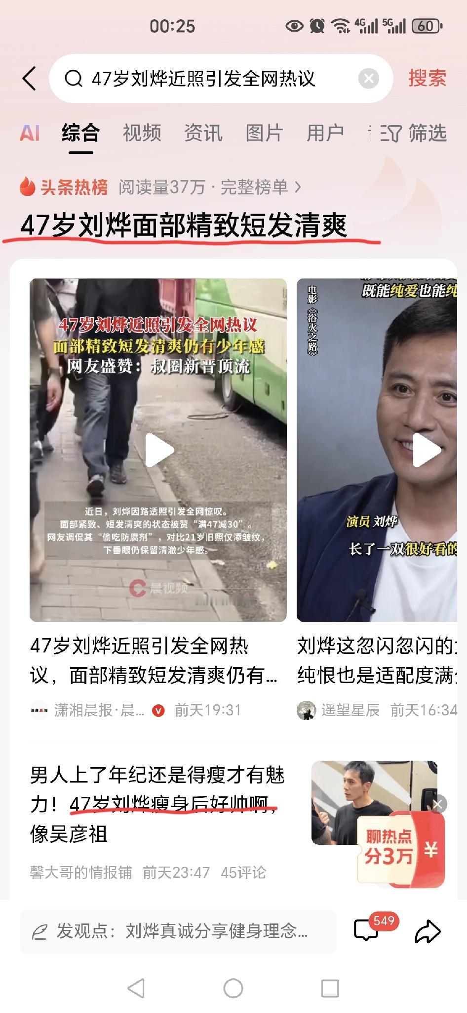 刘烨依家瘦到蜢咁,🈶咩好睇喔…… 被搜索栏推荐骗进来的[捂脸],说47岁的刘