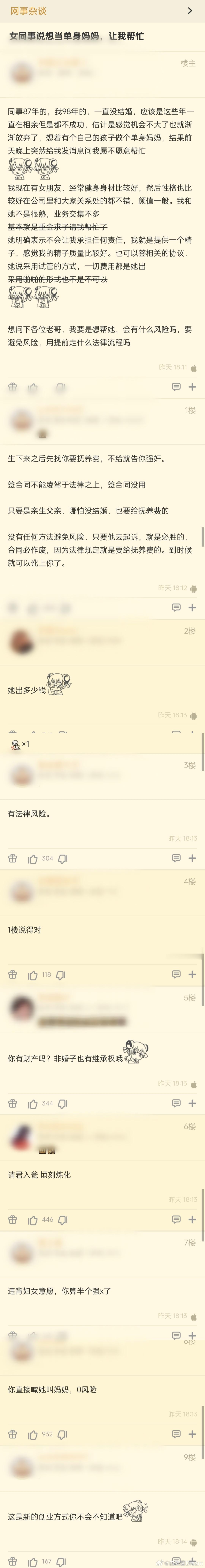 “女同事说想当单身妈妈,让我帮忙”[费解][费解]