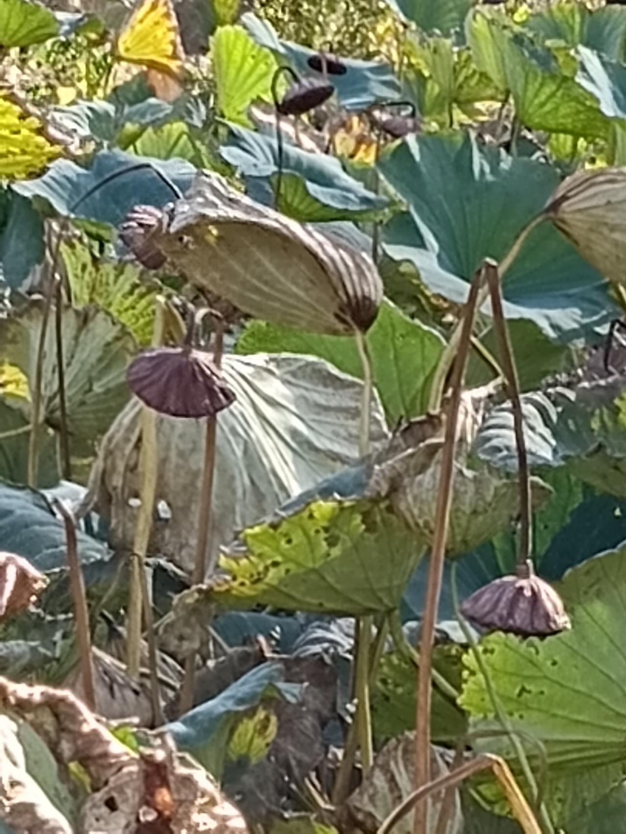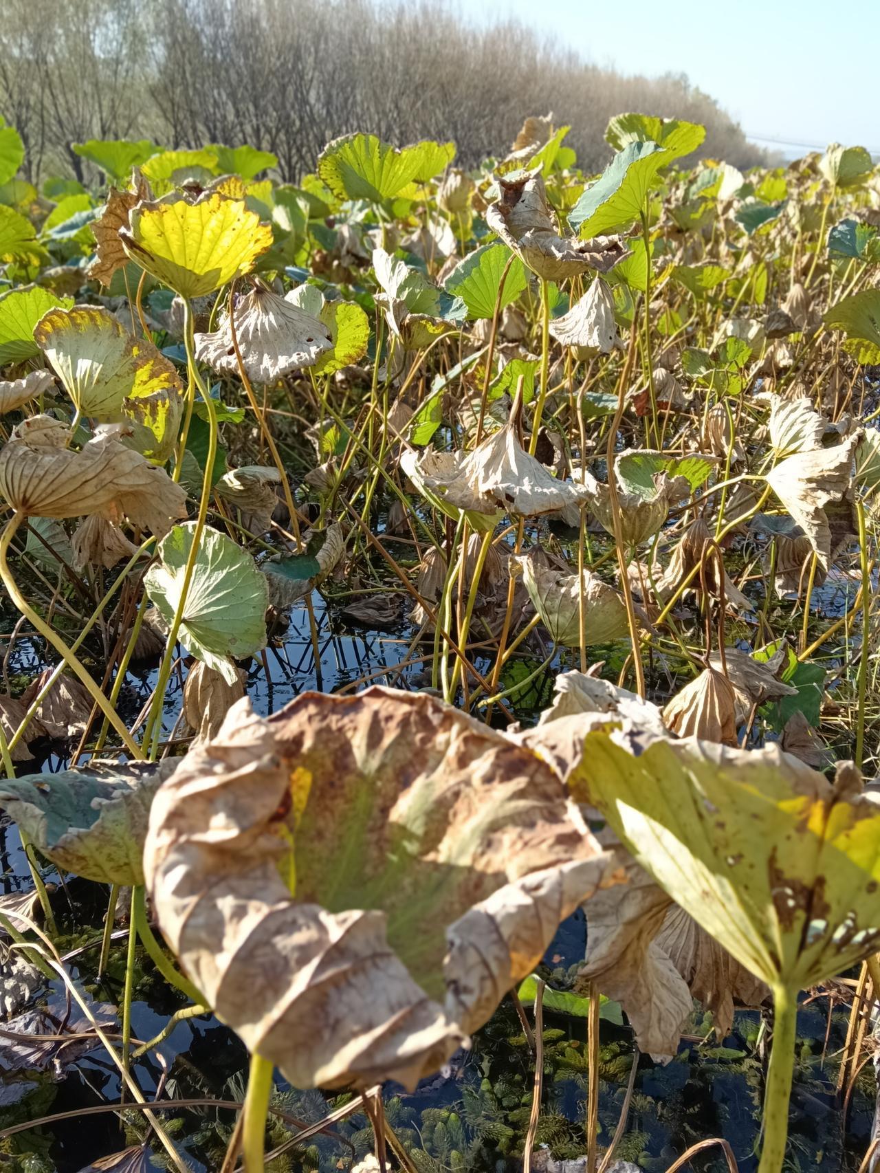 七律.十月十五日喀左浴龙谷莲塘 原创首发:孙守清 十月莲塘影痩多, 残枝败叶映青河。 西风侵水香魂剩, 茎立枯蓬摇摆蹉。 尽管深秋遭冷露, 傲寒硬骨屹然婆。 堪姿入画春晖待, 若谷虚怀翠盖歌。 图片均由作者拍摄。