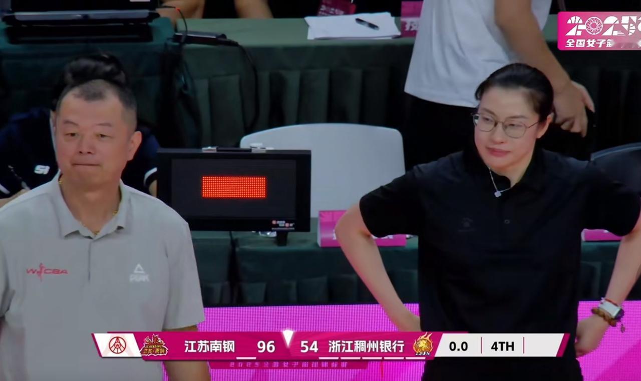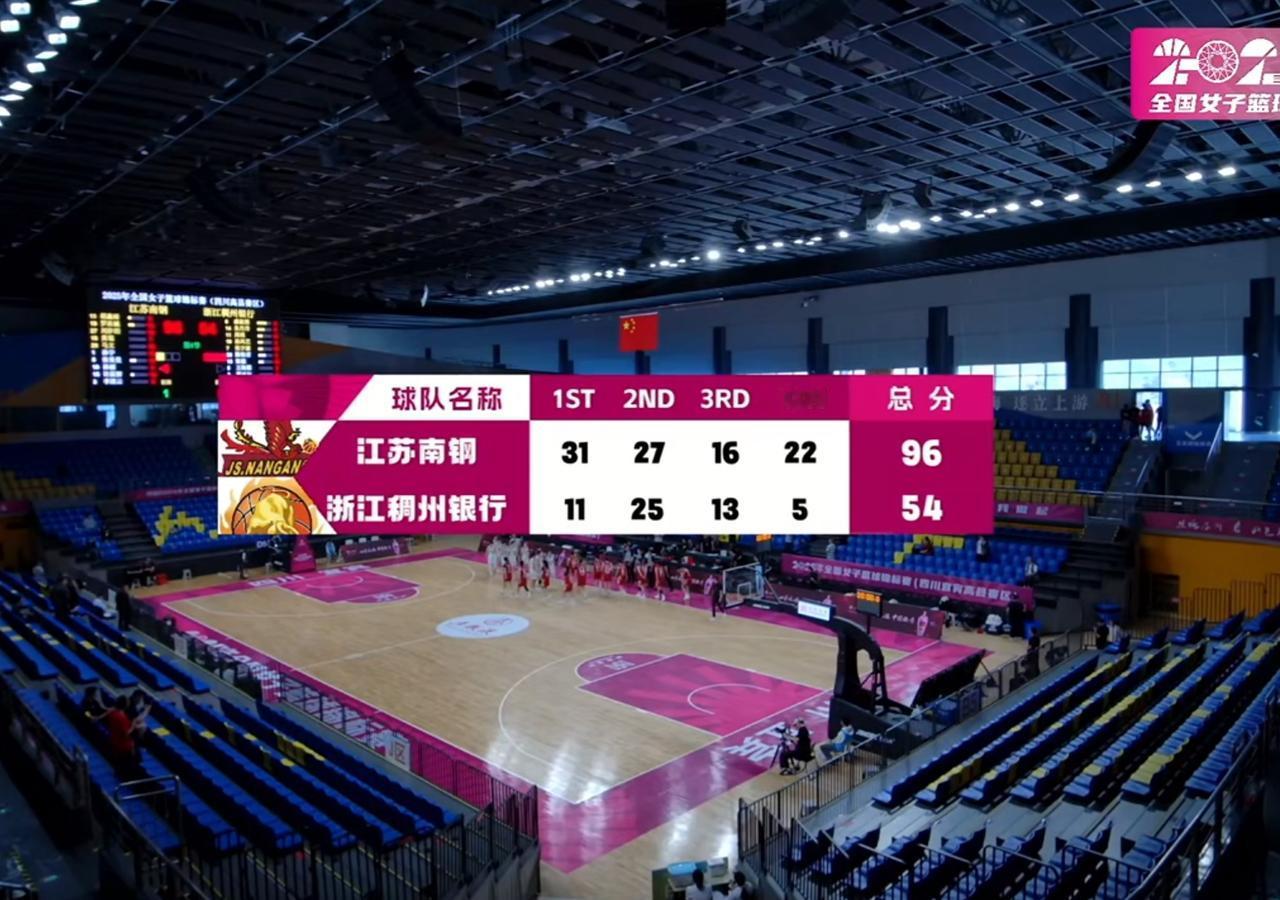 江苏女篮在女篮全锦赛淘汰赛中, 大比分赢下浙江女篮, 首先打进了女篮全锦赛的四强, 有老将金维娜,罗欣棫, 许晨妍,张曼曼, 有新贵王馨雨,吴梦婕, 还有一个, 能随时换上场的主教练陈晓佳, 江苏女篮的阵容齐全完备, 那是奔着冠军去的, 女篮全锦赛决赛将会是四川对江苏, 我们期待这场精彩的比赛!