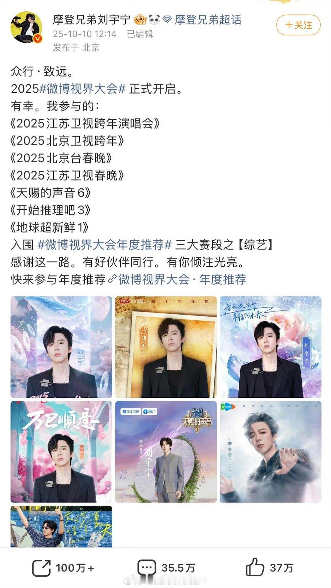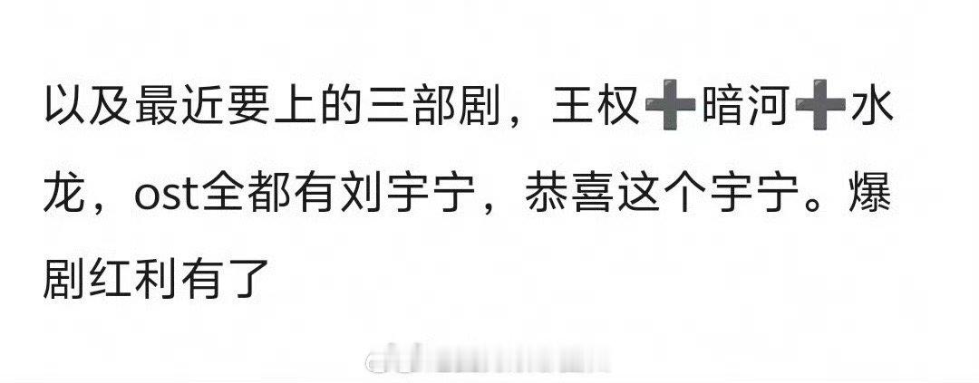 接刘宇宁事业运 刘宇宁的事业节奏太顶了!刚宣代言就拿下晚会首发官宣,演唱会场场爆,剧播即火,待播剧ost全承包,接走这波旺运,事业必旺!