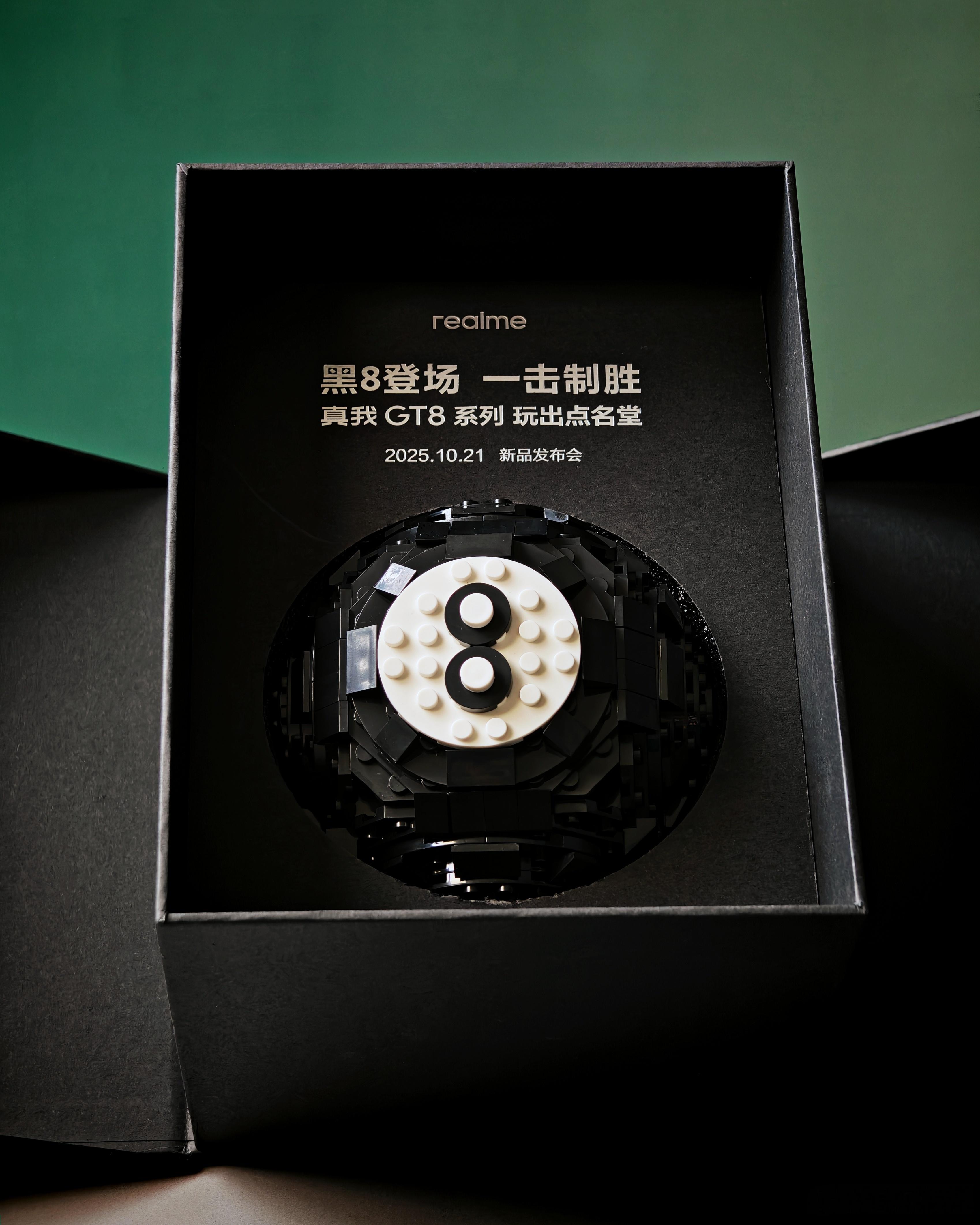 这次真我 GT8 系列邀请函 是一个积木 台球黑 8。