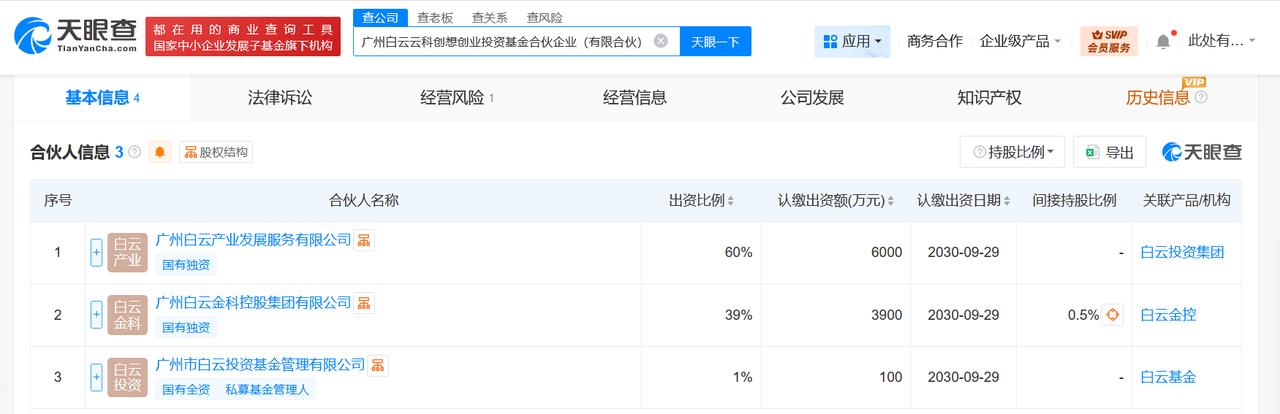 广州白云云科创想创业投资基金成立出资额1亿 天眼查App显示,近日,广州白云云科