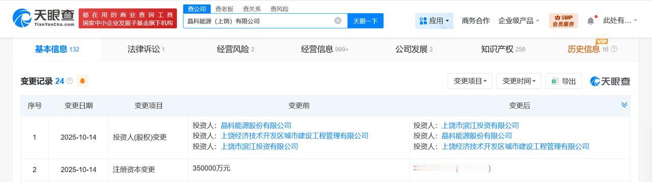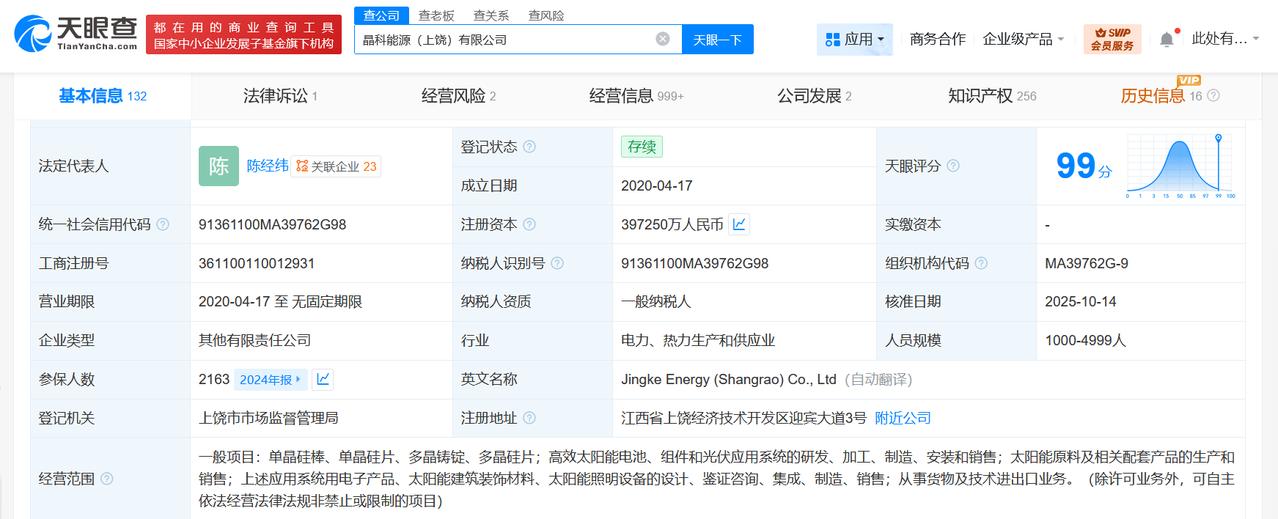 晶科能源上饶公司增资至约39.7亿增幅13.5% 天眼查工商信息显示,近日,晶科