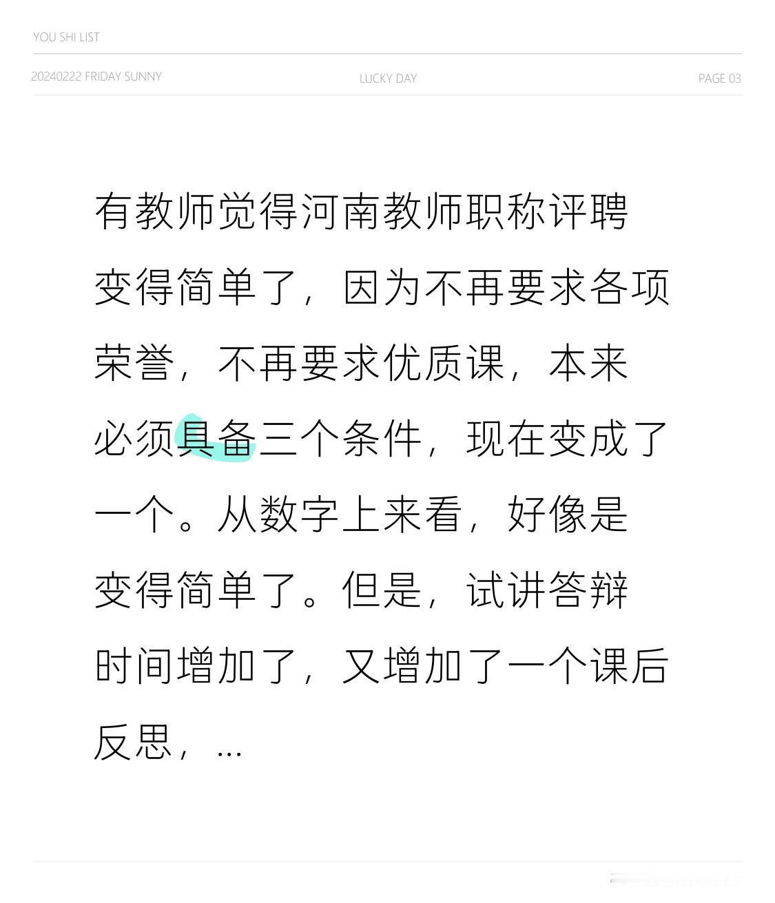 有教师觉得河南教师职称评聘变得简单了,因为不再要求各项荣誉,不再要求优质课,本来