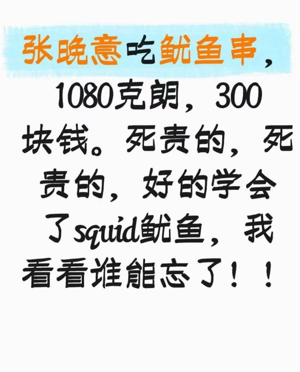 张晚意被300块鱿鱼“CPU”了!6只脚不如一份贵,金句笑喷网友 家人们,张