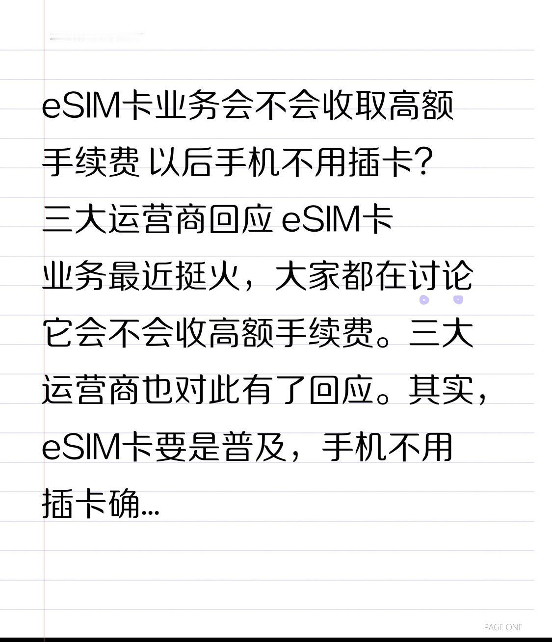 eSIM卡业务会不会收取高额手续费 以后手机不用插卡?三大运营商回应 eSIM卡业务最近挺火,大家都在讨论它会不会收高额手续费。三大运营商也对此有了回应。其实,eSIM卡要是普及,手机不用插卡确实方便,出门再也不用担心忘带SIM卡或者卡损坏。 从目前来看,三大运营商并未明确表示会收取高额手续费。就像当年推广4G卡的时候,也没额外收啥高额费用。而且为了吸引用户,说不定还会有优惠活动。不过,具体收费还得等运营商后续细则。但总体感觉,高额手续费的可能性不大,毕竟这是推动新技术普及,大家就安心期待吧。