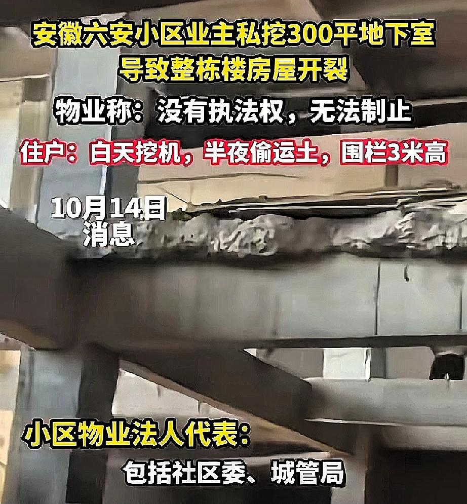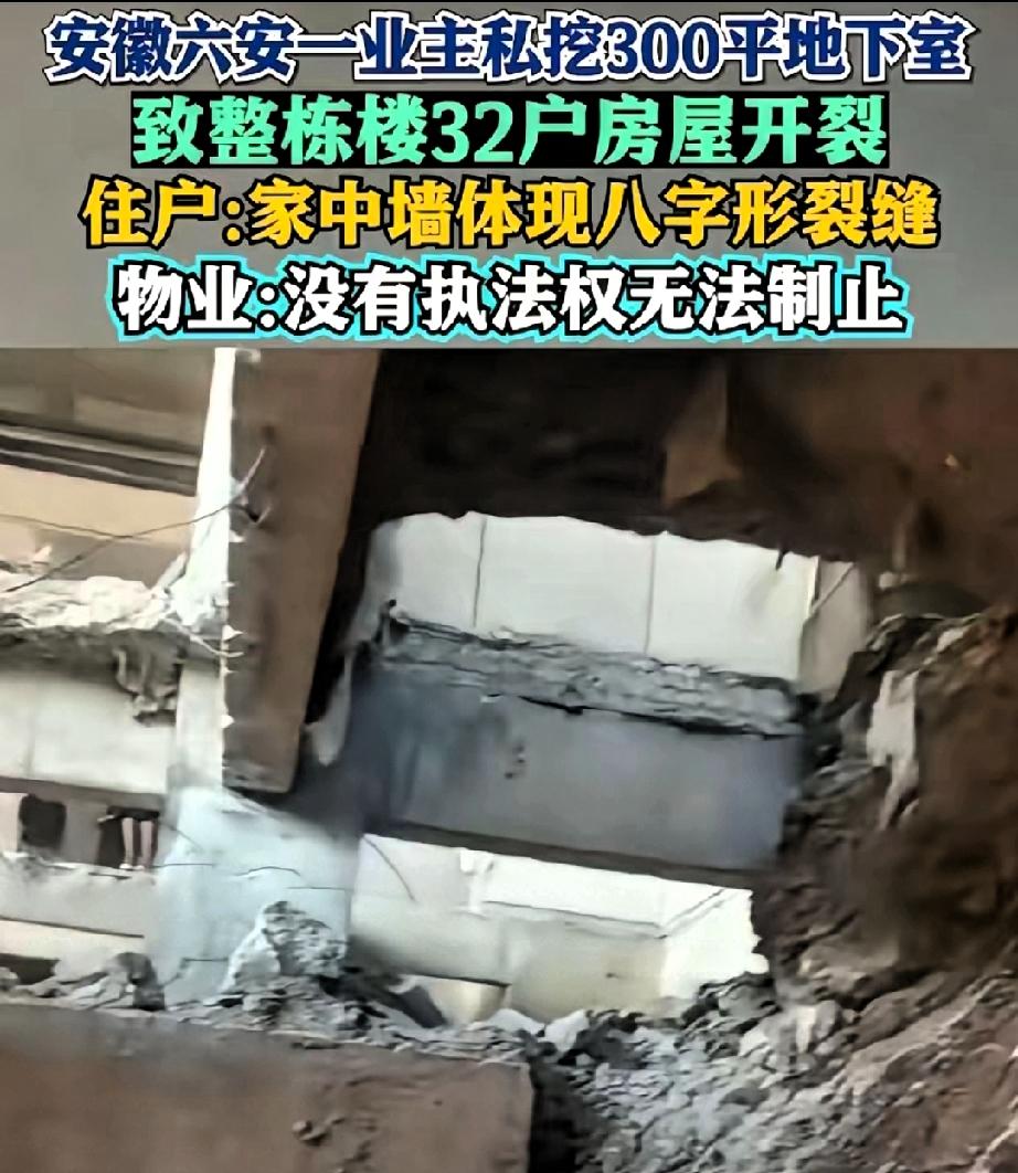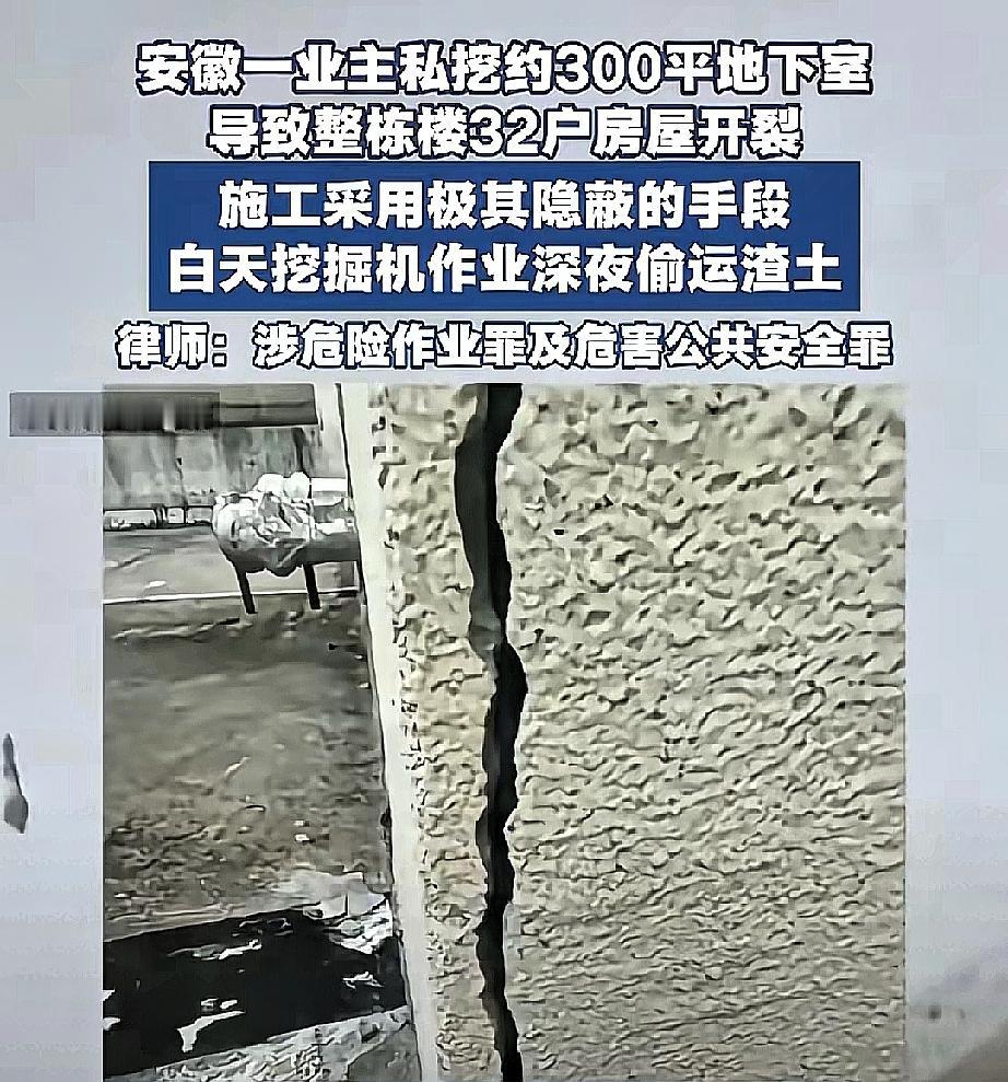 安徽这32户人家真是躺着中枪!楼上的奇葩邻居一出手,大家半辈子攒的房子直接“报废”,这种事换谁都崩溃。 更让人火大的是,物业还在甩锅,完全不想管。可问题是,这不是邻里小摩擦,而是可能涉及危害公共安全的违法行为。这种私自改造、挖墙的行为,一旦导致结构受损,就不是简单的民事赔偿能解决的。 我觉得这32户必须联合起来,不仅要起诉责任人,还要把物业和开发商一起拉进来。房子不是小事,安全更不是小事。 你觉得这种破坏行为应该怎么处罚才能起到震慑作用?是重罚、刑责,还是两者都要?