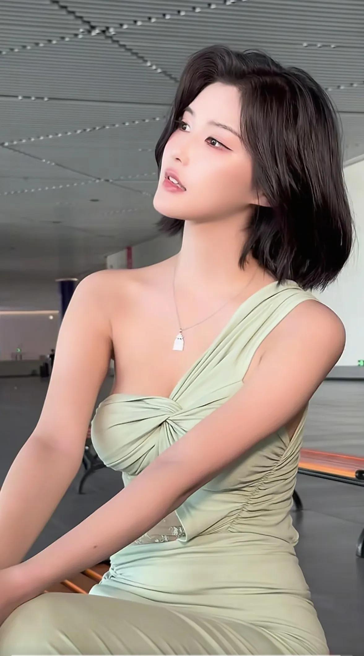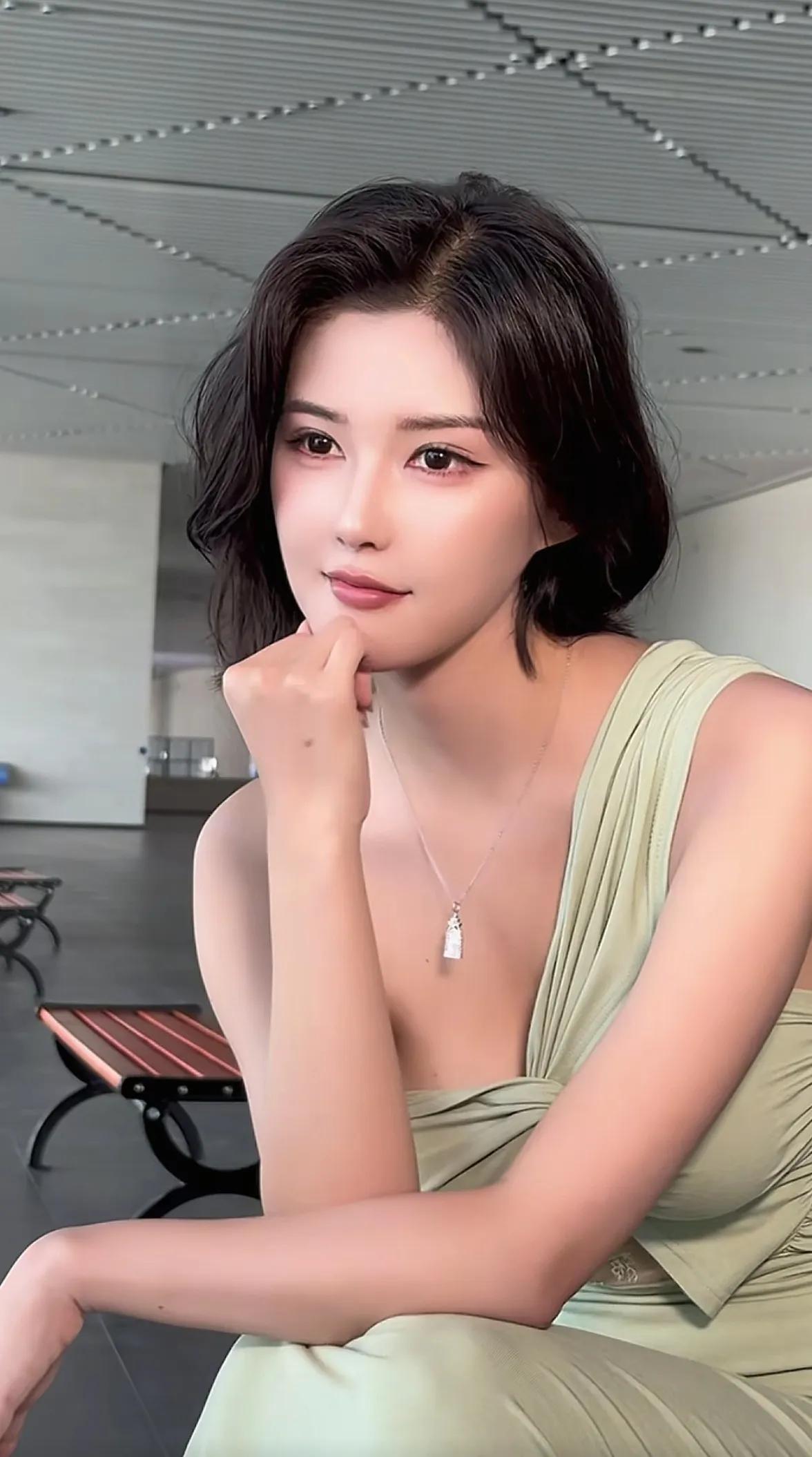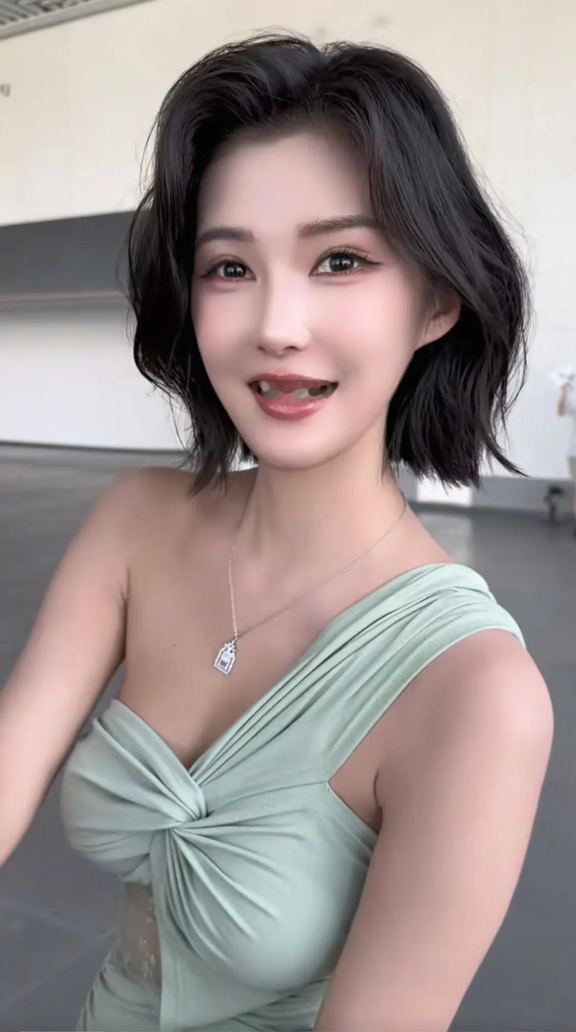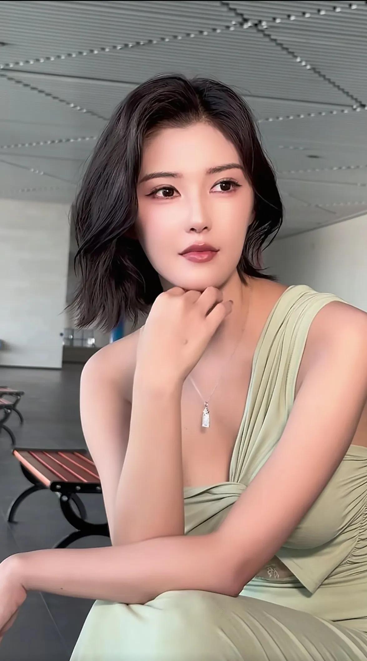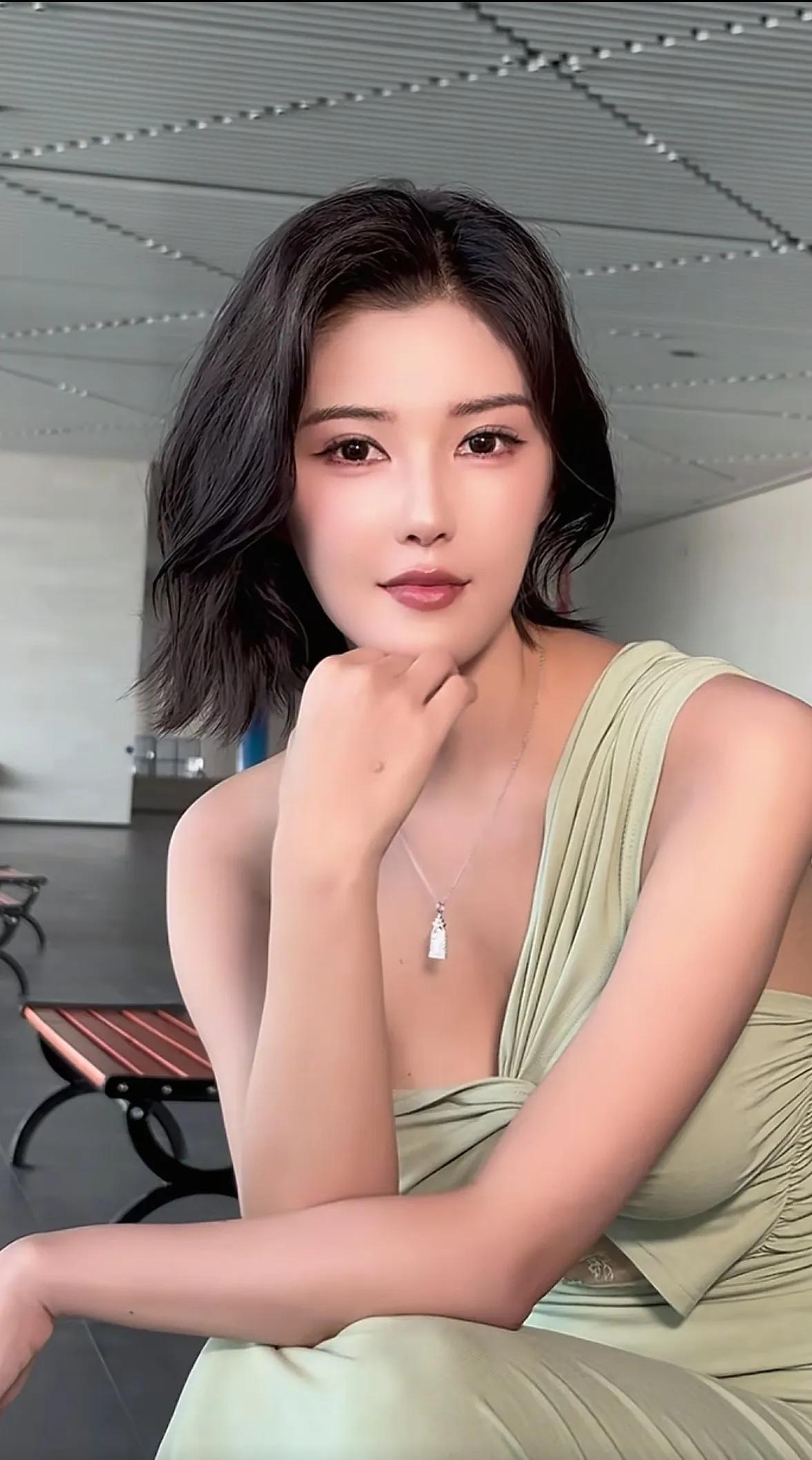 车模程儿,优雅气质,绿裙女神,微笑动人
