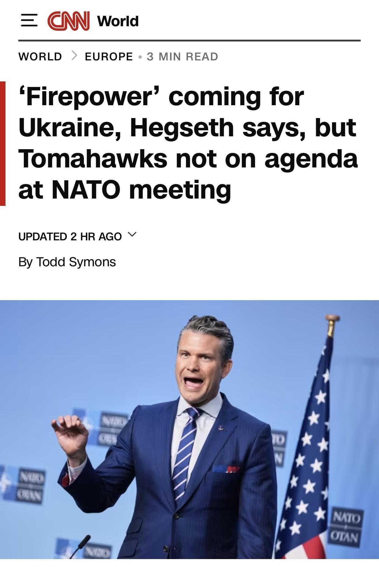 美媒:赫格塞斯透露乌克兰即将得到”火力”,但未说是否是指战斧导弹 美国有线电视新闻网(CNN)官网10月15日报道:美国国防部长皮特·赫格塞斯表示,乌克兰将通过欧洲国家购买美国武器获得“火力”(“firepower”)支持,但尚不清楚其中是否包括美国制造的战斧导弹。 报道说,“火力,这就是即将到来的”,赫格塞斯说道,他的话呼应了北约秘书长马克·吕特(Mark Rutte)在该安全联盟国防部长齐聚布鲁塞尔时发表的评论。他还说,欧洲国家做出的“承诺”将很快转化为对乌克兰的“能力”(“capabilities”)。 报道说,这些武器采购是根据新的“乌克兰优先需求清单”(PURL)计划进行的,该计划已承诺为乌克兰提供20亿美元的军事装备,预计北约国家周三将承诺更多资金。乌克兰希望欧洲国家能够通过该机制购买其先进的远程战斧导弹,但这一决定取决于美国总统特朗普。预计乌克兰总统泽连斯基将于周五在白宫会见特朗普时,推进获得美国战斧导弹,这会让乌军能够对俄罗斯腹地纵深发动攻击,并有可能把莫斯科也纳入打击范围。 报道说,虽然导弹是加强乌克兰国防的关键话题之一,但此事不在周三布鲁塞尔讨论的议程上。北约国防部长已经承诺为乌克兰提供更多无人机,英国承诺交付10万架无人机,荷兰提供9000万欧元(1.04亿美元)来建造自己的无人机。 报道说,英国国防大臣约翰·希利周三表示,”如果北约受到威胁,我们将采取行动,我们必须以我们的实力应对他(普京)的升级行动”(“If NATO is threatened, we will act, and we must meet his (Putin’s) escalation with our strength,” said Britain’s Defense Minister John Healey on Wednesday)。希利宣布,英国战机将在今年余下的时间里,继续在波兰领空执行任务,并称俄罗斯的入侵“鲁莽、危险且完全不可接受”。 报道说,针对俄罗斯无人机威胁,拉脱维亚国防部长安德里斯·斯普鲁斯(Andris Sprūds)表示,能够打击俄罗斯目标的武器对乌克兰来说是“关键的”。 报道的原标题是《‘Firepower’ coming for Ukraine, Hegseth says, but Tomahawks not on agenda at NATO meeting》(赫格塞斯表示,乌克兰将得到”火力”,但战斧导弹并未列入北约会议议程)。