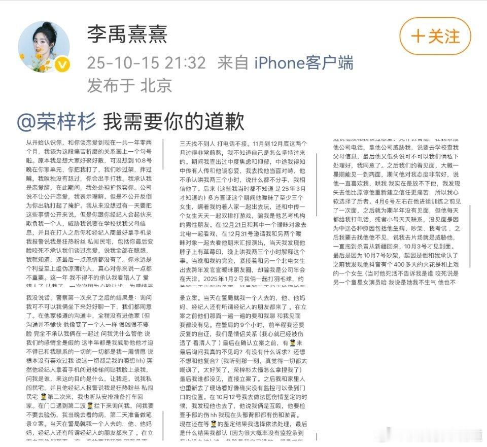 啥啥啥?吃瓜了,李禹熹熹和荣梓杉这是发生了啥,李禹熹熹发博说荣梓杉出轨打人