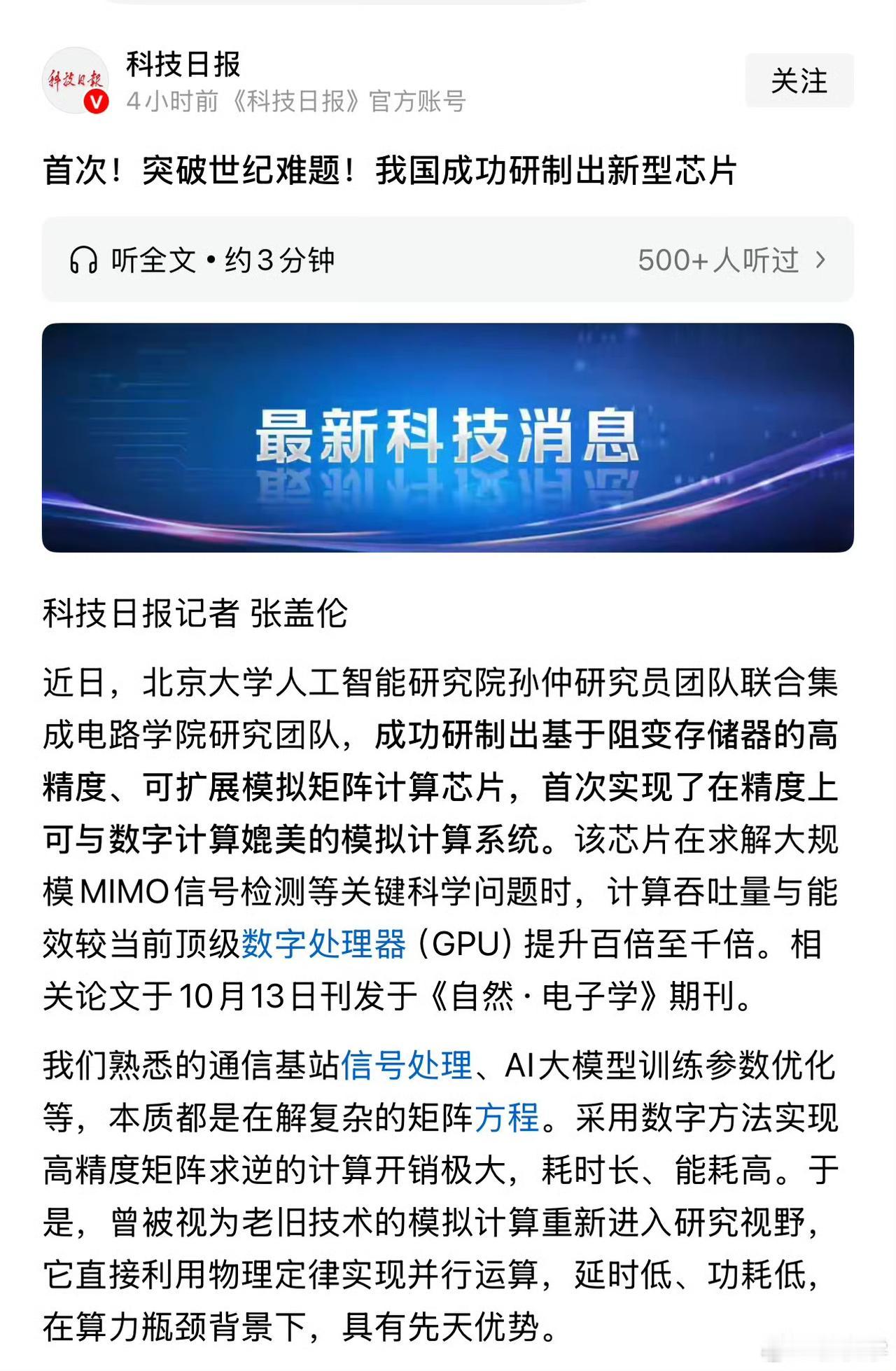 最新科技消息! 北京大学人工智能研究院攻破世界难题!新型芯片研制成功!这下子,至少在这一方面,老美可傻眼了!走着瞧![捂脸]