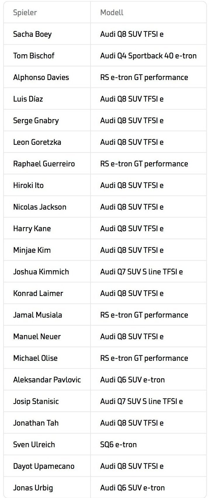 拜仁众将收到了本赛季奥体提供的新车,每个球员都可以在一个长长的列表中选择自己喜欢的车型,最受欢迎的还是Q8 SUV。