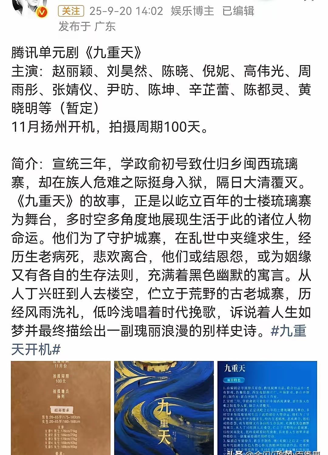 赵丽颖的《九重紫》备案通过了,古装女将,40集,准生证到手。 别的“85花”还在
