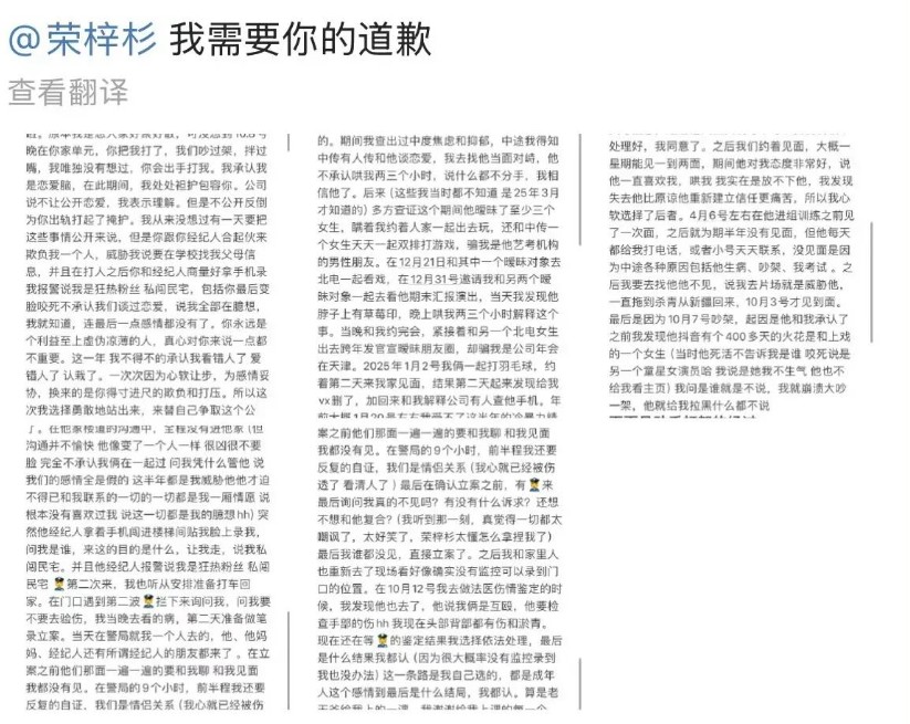 19岁男星荣梓杉塌房?女友发文实锤对方上热搜! “恋爱三个月后,荣梓杉开始对